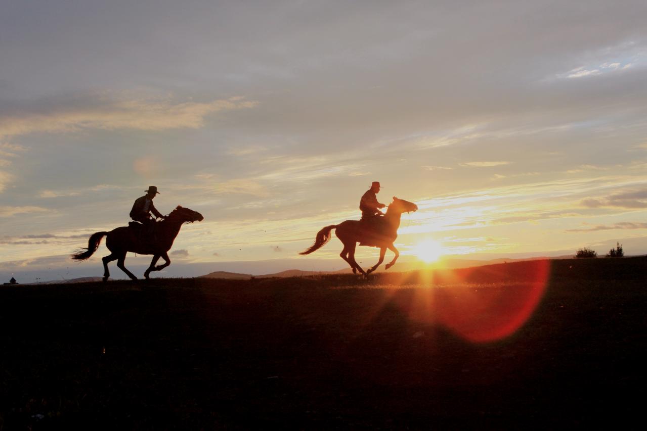 草原放牧人在暮色中回归家园!