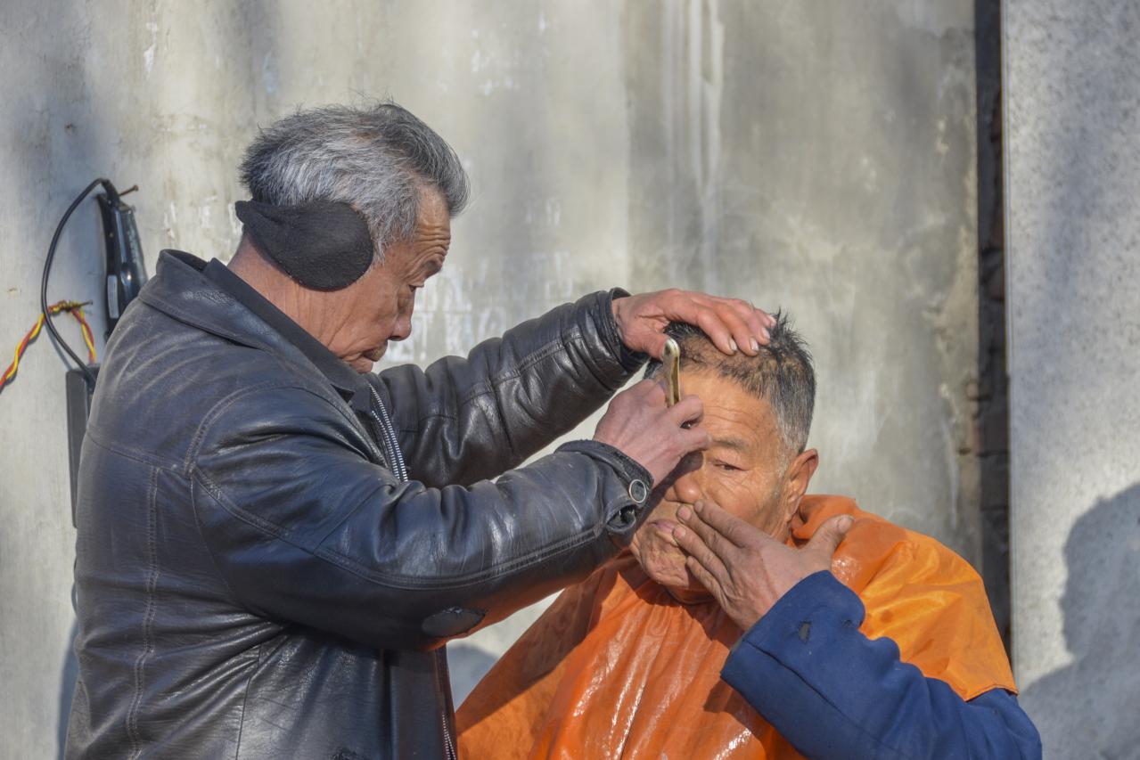 街头理发现在已很少见,但在偏远农村还有时可见,理发师态度和蔼技艺精湛,被理者密切配合心情舒坦。