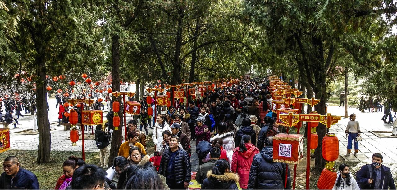 2019年正月初一的岱庙张灯结彩喜气洋洋,很多人前来观赏,欢度春节。
