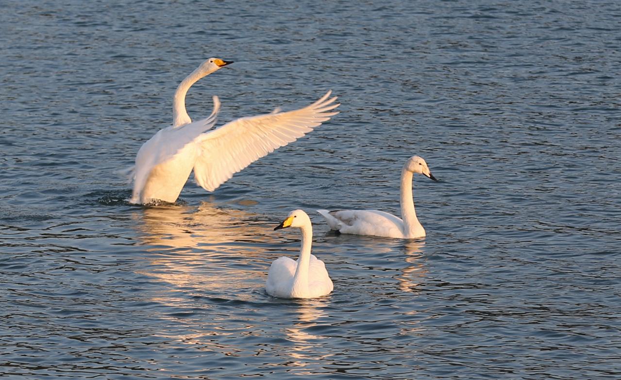 烟墩角天鹅湖的大天鹅,怀抱太阳,把温暖送给小天鹅。