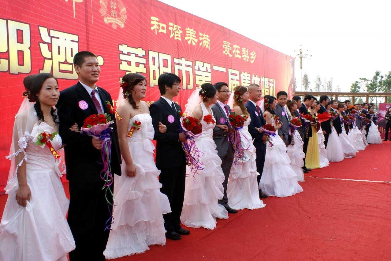 莱阳市第二届集体婚礼。2011年10月摄于莱阳市五龙广场。