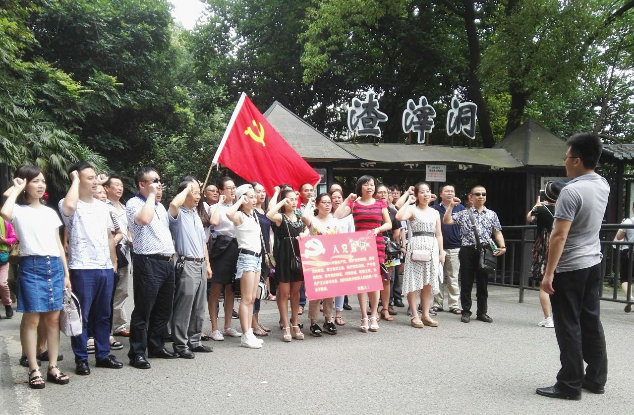 党员在渣滓洞重温入党誓言,不忘初心跟党走。