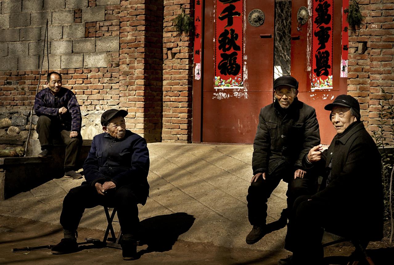 泰安黄前镇李家庄村,几位老人在晒太阳。