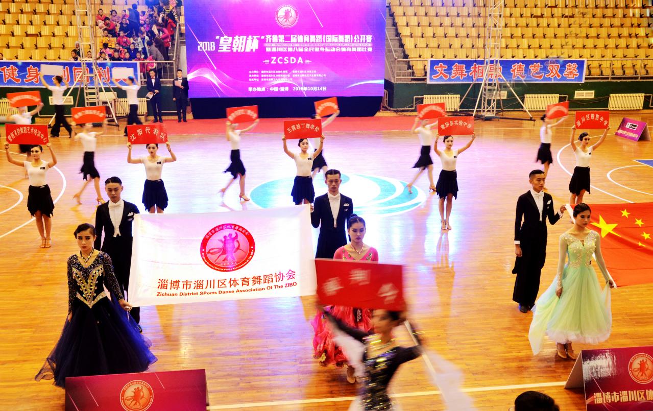 2018.10.14日,《2018“皇朝杯”齐鲁第二届体育舞蹈(国际舞蹈)公开赛》在淄矿集团体育馆隆重举行。 主办单位:淄博市淄川区教育体育局、淄博市淄川区体育总会 承办单位:淄博市淄川区体育舞蹈协会、淄博博远舞蹈艺术发展有限公司 冠名单位:深圳市皇朝文化传播有限公司 组照: 1.2018“皇朝杯”齐鲁第二届体育舞蹈(国际舞蹈)公开赛开幕式 2.全国各地代表队入场 (2018.10.14日拍摄于淄矿集团体育馆)