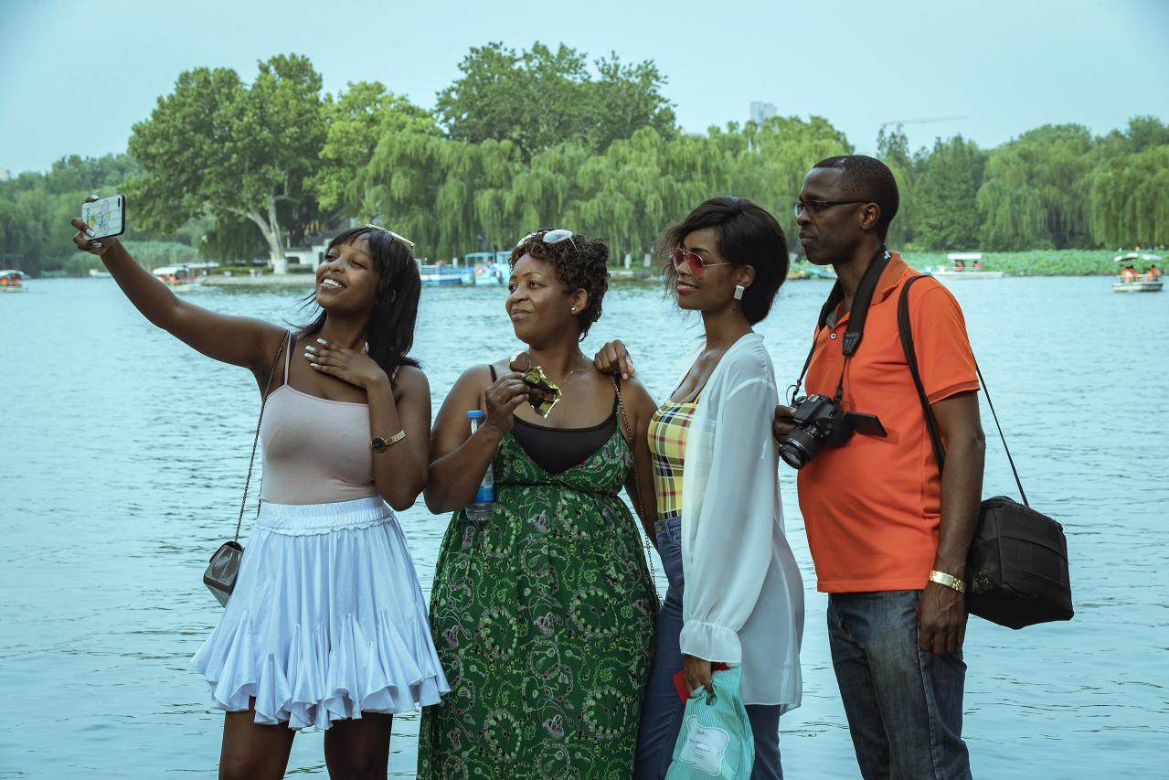 国外友人游览大明湖历下亭.