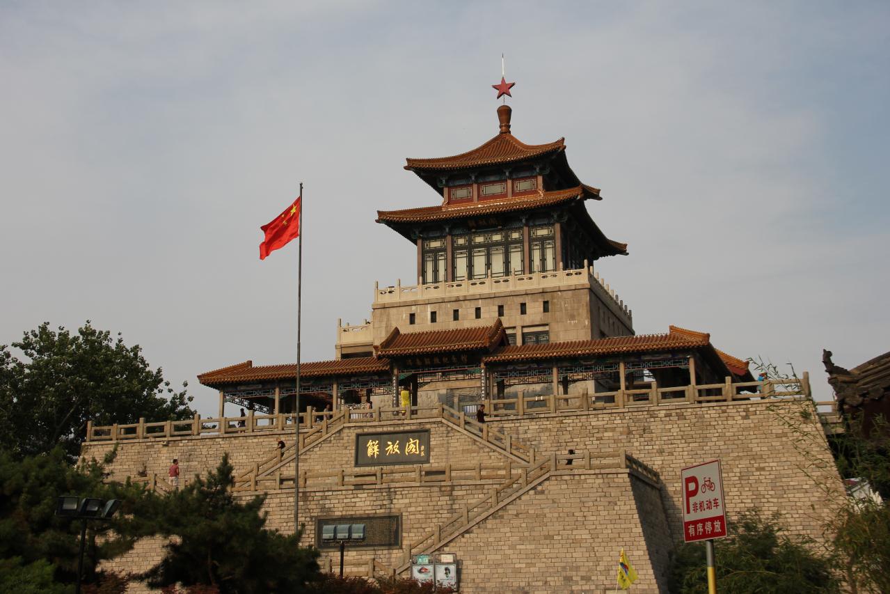 济南解放阁矗立在原济南古城墙的东南角,是为纪念1948年解放济南而建,为淮海战役,解放全中国拉开了序幕。