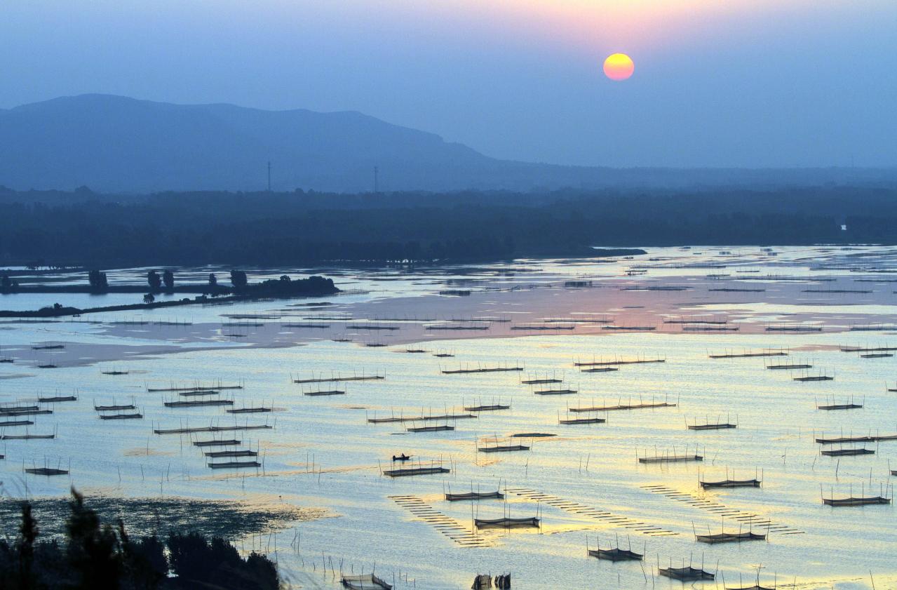 微山县独山湖的早晨,湖上的动静物成湖上音符