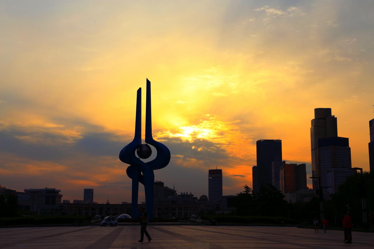 泉城日出。2018年9月10日拍于济南泉城广场。