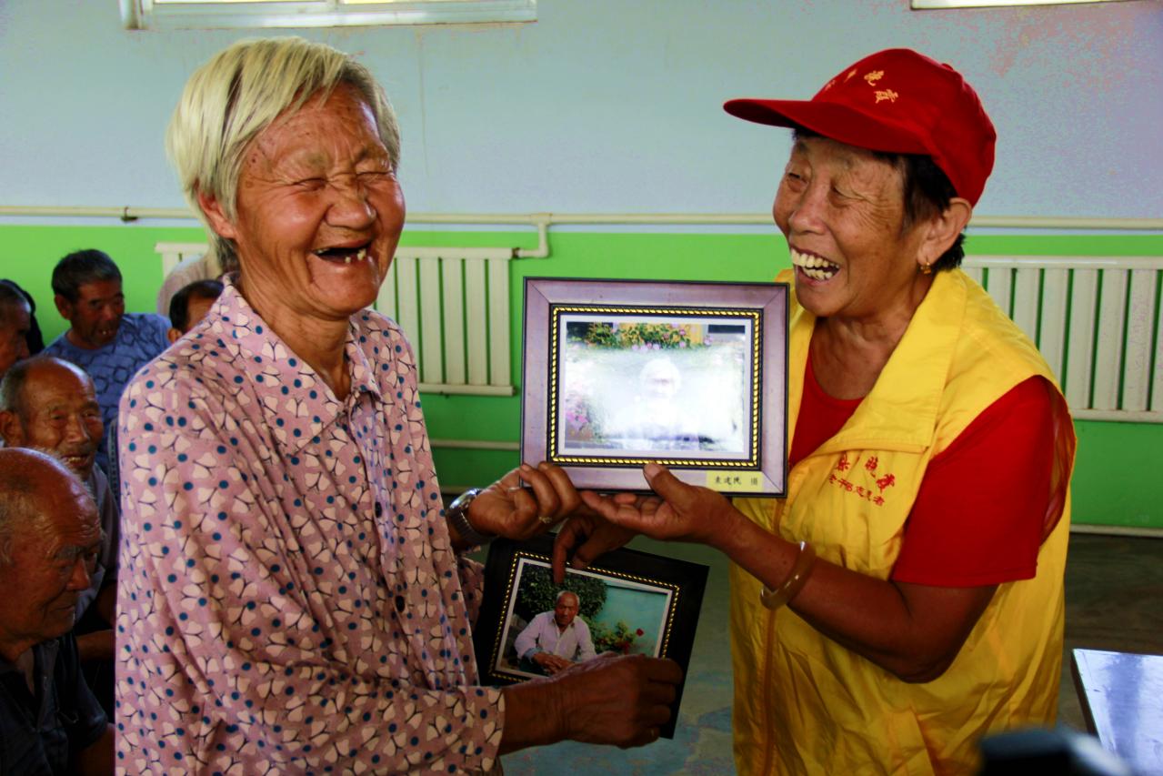 我们老年大学志愿者以老为老服务,为他们理发,演出,捐送衣物,赠送食品,还为他们拍照,装裱好后送给他们,看,她们是多么的高兴啊。