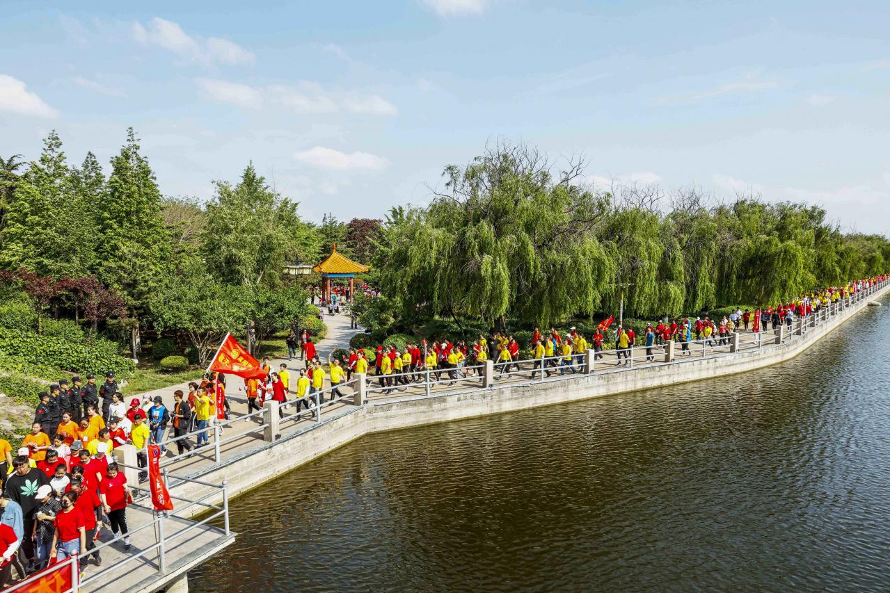 2019年5月拍于莱阳市蚬河公园,今天是新建体育公园启动仪式,这不千名市民健步涌向新健体育公园。