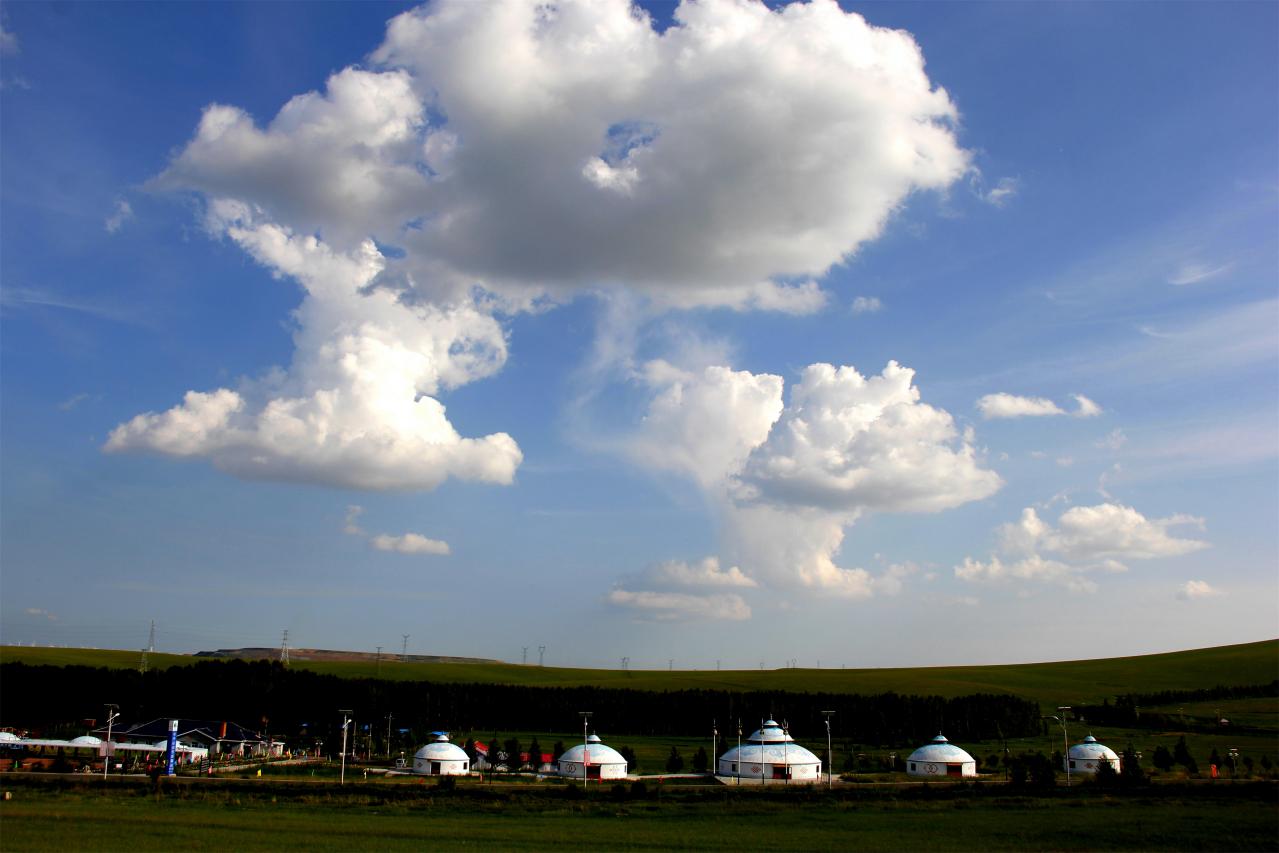 乌拉盖草原很大,很美。蓝天、白云、绿草、牛羊、毡房。都能引起你无限的暇想。