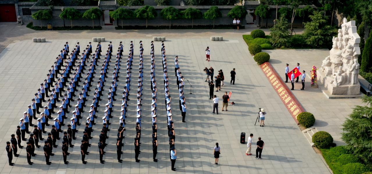 2019.6.29拍摄于惠民县红色教育基地,全县公安干警在革命先烈塑像前,拉起党旗,庄严宣誓。