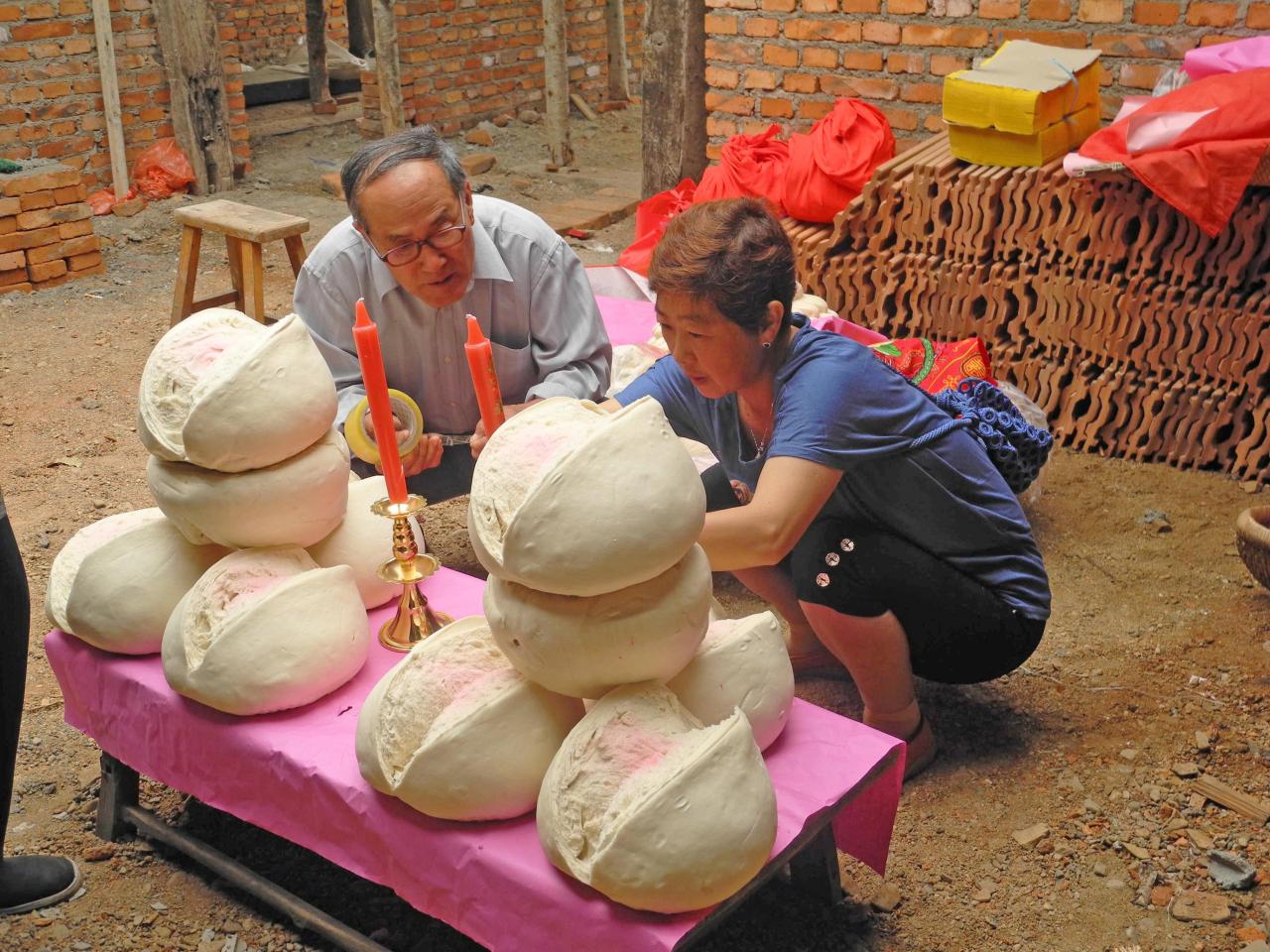 改革开放后,人们富裕起来了,盖新房不是难事了,上梁这天要摆供,祝贺上梁大吉。
