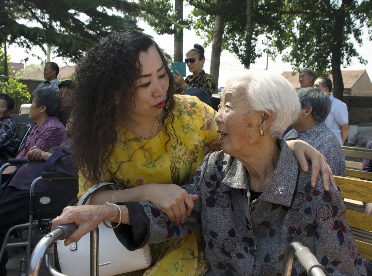 星期天女儿到养老院陪妈妈看节目。