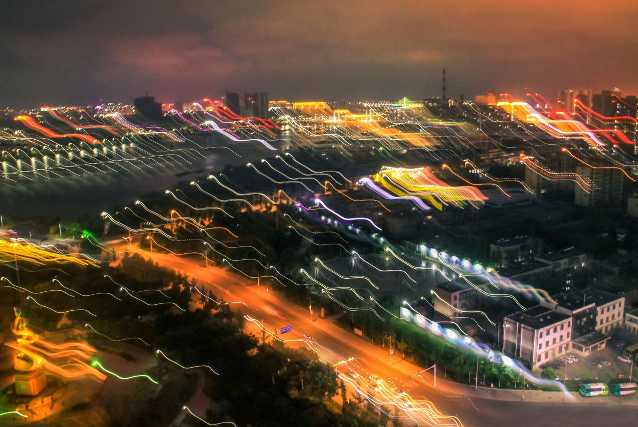 2019年5月,安丘市一路大桥,夜景,摇晃相机。