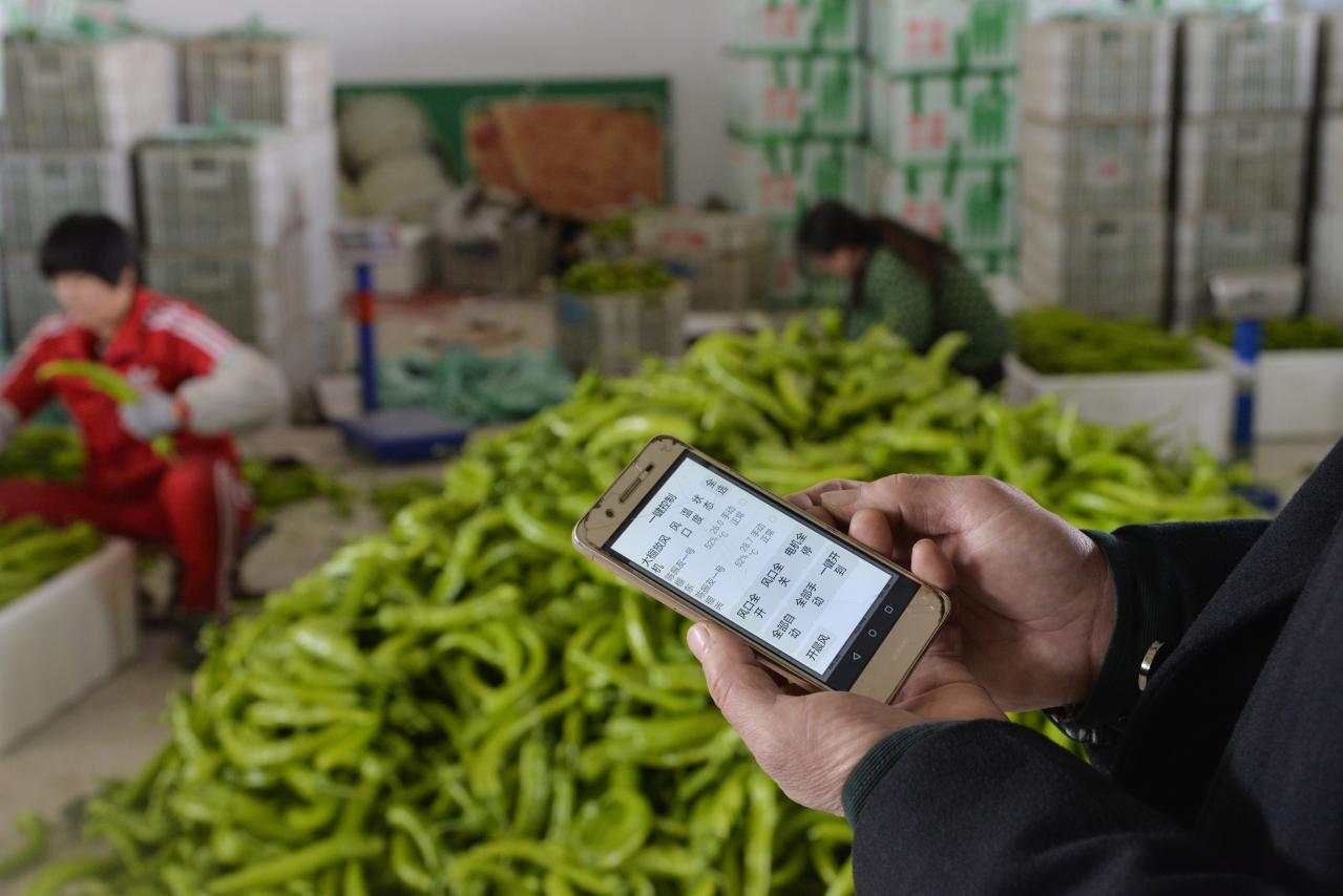 2019年1月摄于寿光市稻田镇东庞陈村。村主任陈振友投资200多万元,建7个大棚种长辣椒年纯收入100多万元。对大棚的控温、控湿等日常管理智能化,只要有网络的地方,就能用手机进行操作。