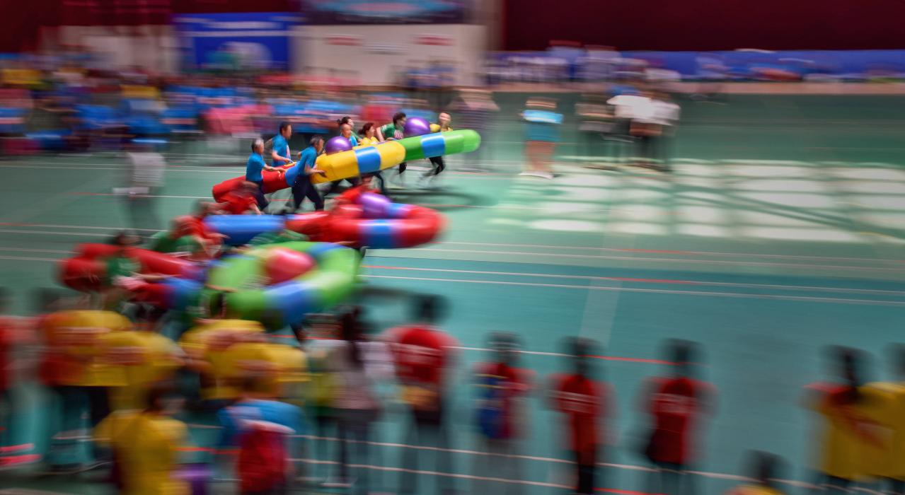 在潍坊市首届老年趣味运动会比赛中抓拍。