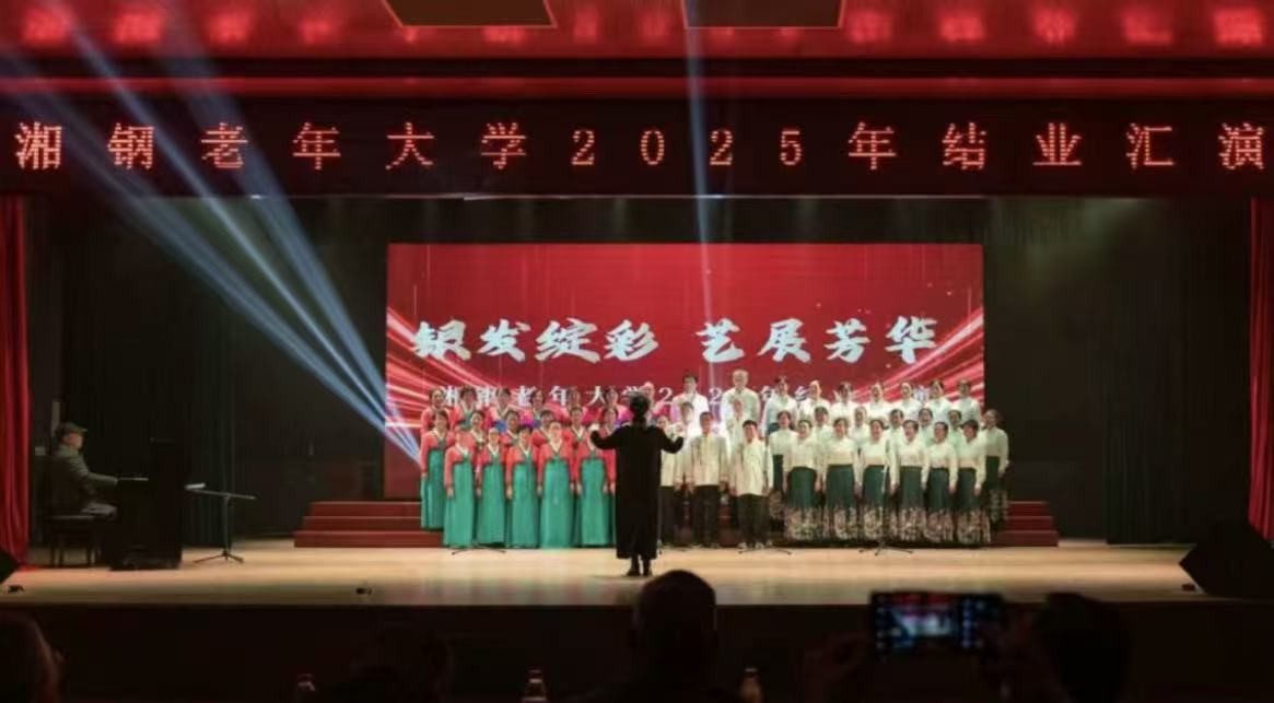 12月30日下午,湘钢老年大学在湘钢老干活动中心举办2025学年结业汇报演出。湘钢部分老领导、离退休处负责人及近300名老同志共同见证了这场视觉与文化的双重盛宴。 离退休处负责人发表了热情洋溢的致辞,他回顾了本学年丰富多彩的教学活动,对学员们展现出的“老有所学、老有所乐、老有所为”的精神风貌给予了高度评价,并向辛勤耕耘的老师们表示衷心感谢。他指出,汇报演出不仅是学习成果的集中展示,更是精神风貌的精彩绽放,他勉励学员继续发扬“学习到老、开心到老、健康到老”的精神,书写好人生下半程的精彩篇章。他表示湘钢将继续加大对老年大学的支持力度,为学员们提供更优质的教学资源、更完善的学习环境和更贴心的精准服务。随后,举行了简朴而隆重的颁奖仪式。湘钢老领导为优秀学员和优秀教师颁发了荣誉证书。 典礼结束后,期盼已久的结业汇报演出在红歌联唱中拉开帷幕。学员们身着盛装,精神矍铄,用歌声、舞姿和才艺,尽情抒发对生活的热爱和对企业关怀的感激之情。整场演出节目形式多样,内容丰富,涵盖了舞蹈、合唱、电吹管合奏、形体表演、京剧、太极拳、非洲鼓等多个艺术门类。最后,演出在全体演员和观众齐声高唱《走向复兴》的歌声中落下帷幕。现场掌声雷动,经久不息。此次结业汇报演出,不仅为学员们提供了一个展示自我、交流情感的舞台,更充分展示了湘钢老年大学丰硕的教学成果和学员们积极向上的精神风貌。 |