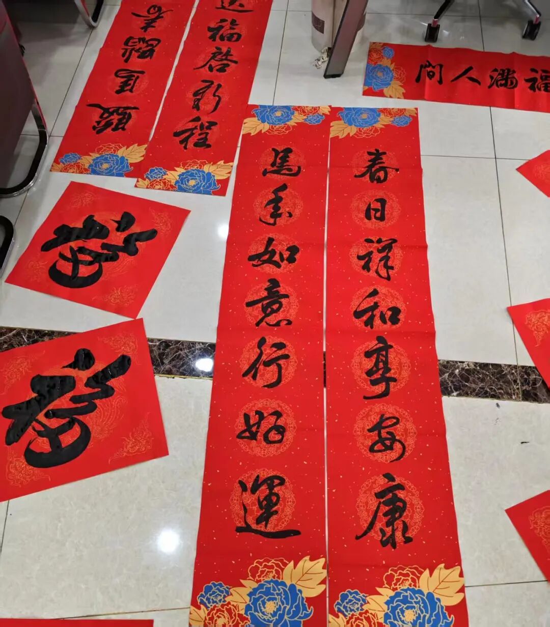 活动现场暖意融融,墨香四溢。长条案几上,大红宣纸铺展如锦,笔墨砚台整齐陈列,老年大学的师生们精神矍铄、神采飞扬,提笔、蘸墨、运腕间一气呵成,“马年如意行好运,春日祥和享安康”“马跃前程添锦绣,春临盛世谱新篇”等一副副寓意吉祥的春联,一个个饱满圆润的“福”字跃然纸上,既饱含对马年新春的美好期盼,也尽显老年学员扎实的艺术功底。