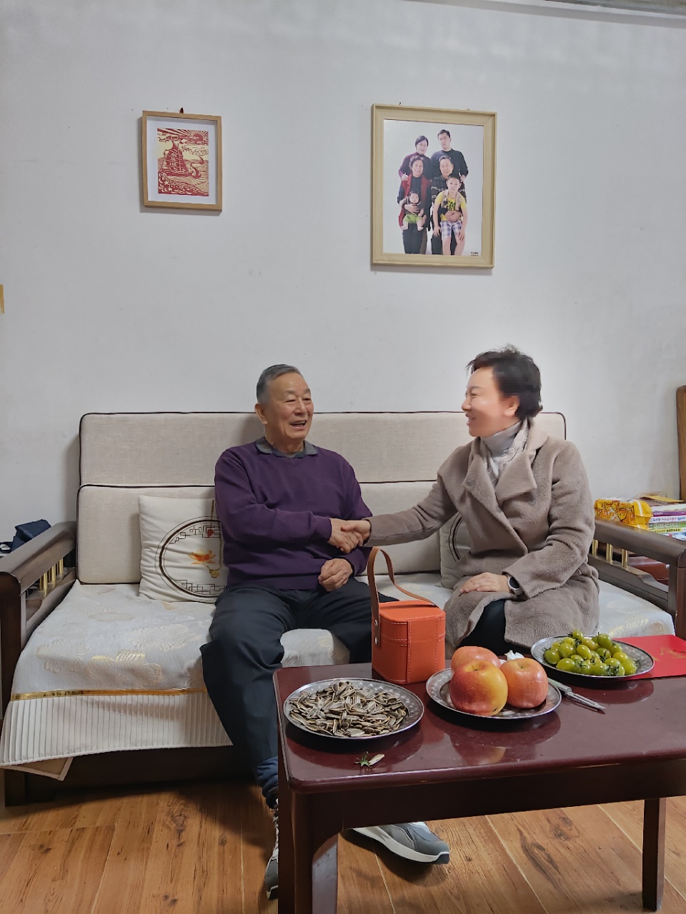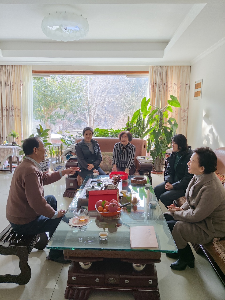 第一站,黄晓军来到千佛山麓下的经济技术开发中心宿舍的于永旭家中。于永旭75岁,退休前是山东机电设备招标中心主任,正厅级干部。目前在家赋诗论文,悠闲自在。他是《老宿文苑》积极撰稿者之一。黄晓军向于永旭致以新春祝福,送上了单位赠送的过年礼品和礼金,同时通报了单位近期党组织名称的变化由党委改为党组,还简要介绍了单位一年来的工作情况。于永旭回顾了招标机构的发展变迁,以及他建议今后招标工作的发展方向。客厅里客人和主人谈话悠悠,有说不尽的话语,拉不完的家常。窗前绿植碧翠散发着隐隐靓意,衬托着映记着中心领导对老干部的关心关爱。