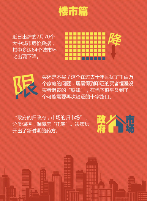 “深化收入分配体制改革,努力缩小收入差距”,新一届领导集体在执政伊始就已明确的目标,正逐步走向现实。 楼市:楼还是那些楼 市已不是那个市 “北漂”的小王最近在微信上很活跃,也很困惑,“我马上纳税满五年了,有资格了,你觉得我现在该出手买房吗?” 小王困惑的背景,正是近日出炉的7月70个大中城市房价数据,其中多达64个城市环比出现下降。而与之对应的是,据媒体报道,目前已有超过3/4的限购城市在一定程度上松绑了限购政策,部分城市放宽了落户政策,甚至对购房进行税费补贴。 一边是价格出现松动,一边是一些地方跃跃欲试酝酿“救市”。 买还是不买?这个在过去十年困扰了千百万个家庭的问题,屡屡得到印证的买者恒赚没买者沮丧的“铁律”,在当下似乎又到了一个可能需要再次验证的十字路口。 有房的人尤其是有多套房的人期望价格能够永远涨下去,至少不能跌破购买价;没房的人祈祷房价赶紧跳水,回归到当初错过的那个时机。 “预期”的迷茫,让市场各方都在急切的关注和搜寻“政策的信号”。 然而,新一届政府上任一年多以来,却甚少就楼市调控进行明确表态。相对应的是关于保障房建设、棚户区改造的投入持续加码,毫不放松。 当楼市的“楼”仍然还在伴随着供需平衡的波动不断的建造,楼市的“市”却已在悄然发生改变。 从1998年起推行住房商品化改革至今不过十余年,中国房地产市场所存在的区域差异性、供求平衡的波动性、自住与投资需求的复杂性决定了楼市的发展很难用一个简单的框架进行约束整治。 如何才能告别暴涨暴跌,避免硬着陆,切实防范房地产金融风险,消除过于依赖土地财政的不良隐患? “政府的归政府,市场的归市场”,分类调控,保障房“托底”。决策层开出了新时期的药方。 |