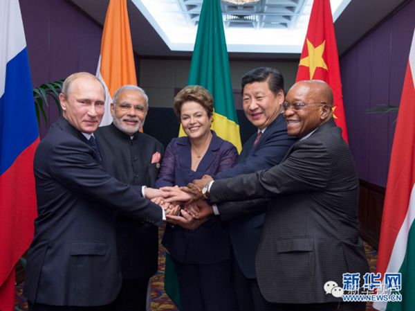 ——金砖国家领导人非正式会晤一致同意要加强全方位合作,落实好巴西福塔莱萨会晤成果,加快推进金砖国家开发银行和应急储备安排有关建设进程,密切沟通和协调,维护共同利益。