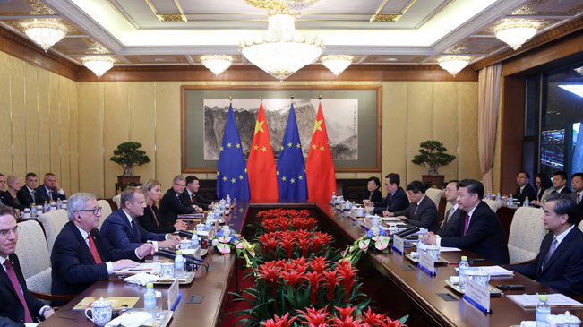 七月十二日,国家主席习近平在北京钓鱼台国宾馆会见来华出席第十八次中国欧盟领导人会晤的欧洲理事会主席图斯克和欧盟委员会主席容克。新华社记者 刘卫兵摄 本报北京7月12日电 国家主席习近平12日在钓鱼台国宾馆会见来华出席第十八次中国欧盟领导人会晤的欧洲理事会主席图斯克和欧盟委员会主席容克。 习近平指出,中国欧盟构建和平、增长、改革、文明四大伙伴关系的共识正在落地生根。双方在重大国际事务上保持着战略对话,共同为改善全球经济治理、促进世界可持续发展作出了积极努力,在加强中欧各自发展战略对接方面达成重要共识并付诸行动。中欧双方要不断深化互利共赢的全面战略伙伴关系。 习近平强调,中欧要用大智慧增强战略互信,最根本的是要抓住世界多极化、经济全球化发展的必然趋势,抓住各国人民对和平与发展的共同诉求,坚持走合作共赢之路。中方支持欧盟和欧洲一体化进程的政策不会改变,乐见繁荣和稳定的欧盟和英国,愿同欧方继续携手致力于和平与发展。中欧要用大视野拓展合作。欢迎欧方积极参与“一带一路”建设,双方要加强发展战略对接,加强交流互鉴和互利合作,推动彼此合作迈向更高端。中欧要用大胸怀化解难点问题。双方要坚持相互尊重、平等相待的原则,以建设性方式管控和减少分歧。 习近平指出,中欧有必要加强在二十国集团、国际货币基金组织等多边框架内协调和合作,希望欧盟如期履行《中国加入世界贸易组织议定书》第十五条义务。希望中欧双方共同推动二十国集团杭州峰会取得成功,为促进世界经济增长、完善全球经济治理作出更大贡献。 习近平强调,南海诸岛自古以来就是中国领土。中国在南海的领土主权和海洋权益在任何情况下不受所谓菲律宾南海仲裁案裁决的影响。中国不接受任何基于该仲裁裁决的主张和行动。中国一贯维护国际法治以及公平和正义,坚持走和平发展道路。中国坚定致力于维护南海和平稳定,致力于同直接有关的当事国在尊重历史事实的基础上,根据国际法,通过谈判协商和平解决有关争议。 图斯克和容克表示,欧盟同中国日益高度相互依存,当前形势下,欧中加强全面战略伙伴关系十分必要。英国公投结果和退欧进程不会影响欧中关系发展。欧方愿继续同中方在广泛领域推进合作,共同应对全球性挑战,为促进世界和平、安全与繁荣发挥积极作用。欧方愿保持中国最大贸易伙伴地位,加强双方在创新、环境、数字经济、绿色增长等领域合作。欧方会履行自身在世界贸易组织框架内承担的义务。欧方期待同中方共同努力,推动二十国集团领导人杭州峰会取得积极成果。 国务委员杨洁篪等参加会见。 |