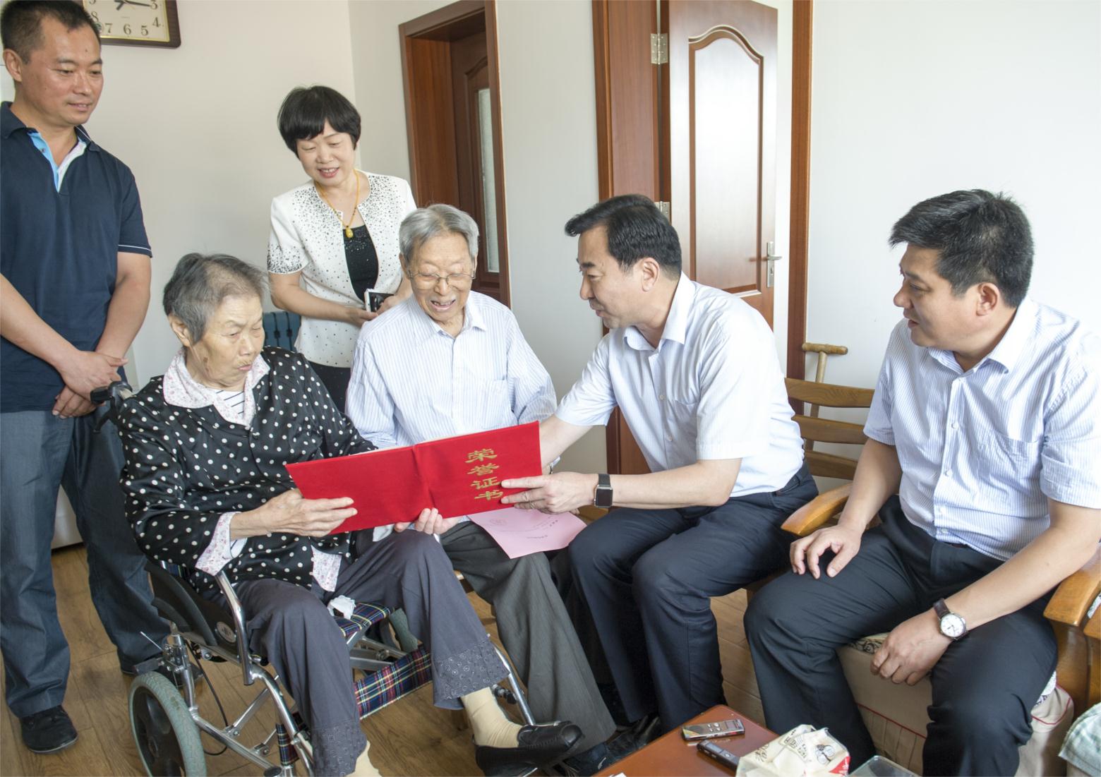 8月29日下午,在严干代替行动不便的老伴儿毕建华上交10万元“感恩党费”后,济南市天桥区区委书记毕筱奇将荣誉证书颁发给两位老人。毕筱奇表示,毕建华通过“感恩党费”的形式表达了对党的真情、感恩和信仰。毕建华一生工作勤勤恳恳、认真负责,对党保持着热爱和忠诚,哪怕在年老生病后,也想着为党组织贡献点什么。这种行为体现了一个老党员的忠诚和本色,值得所有党员学习。现在全体党员都在进行“两学一做”学习教育,怎么做合格党员?毕建华和严干两位老人一心为党的行为值得学习。 济南市天桥区区委书记毕筱奇将荣誉证书颁发给毕建华 |