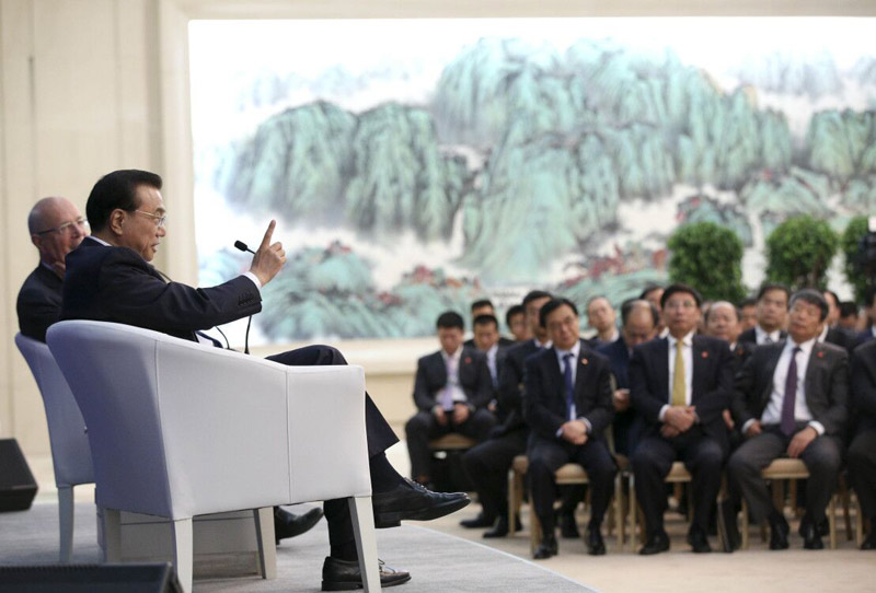 2016年6月28日上午,国务院总理李克强在天津梅江会展中心同出席2016年夏季达沃斯论坛的300多名各国企业家代表举行对话会。(资料图) 中国坚定支持世界贸易组织和一切旨在推动包容发展的自贸安排。经济全球化在前所未有的规模上推动了财富的创造和分享,但这一进程也存在问题,主要是在分享方面。只要各国齐心协力,确保所有人都能从全球化中受益,这些问题是完全可以解决的。 在国内,中国政府在处理同市场关系时采取介入更少、更加平衡的方式。为改善中国的营商环境,我们推动简政放权、放管结合、优化服务等改革,着力防范各种风险隐患,并将不断完善营改增改革,确保各行业税负只减不增。 我们将开放更多行业,并放宽更多行业准入。我们正在对基于负面清单管理模式的外资准入制度进行推广前的试点,未来还将出台更多措施,让所有在华注册的企业都能一视同仁享受政策。在西部欠发达地区或东北老工业基地投资的企业,还可享受更多优惠政策。 政府将继续投资基础设施建设,增加国内需求。更多资源将投向乡村公路、供排水系统和信息网络建设等以往并不显眼的短板领域。在改善硬件的同时,努力加强民生保障,特别是对弱势群体的保障力度。 结构性改革正在收到成效。2016年,中国压减落后过剩钢铁产能6500万吨以上、煤炭产能2.9亿吨以上。我们计划在三至五年内钢铁、煤炭产能分别压减1.4亿吨和8亿吨,使相关行业恢复更加健康的基本面。与此同时,政府还联手企业,为转岗人员提供多种形式的再培训。仅2016年,转岗安置人数就达到70万。 中国经济增长的新动能正在蓬勃兴起。服务业占经济总量的比重已超过制造业,领军地位更加巩固,消费对GDP增长的贡献率在六成以上。新动能不仅创造新价值,也提升了传统产业的效率和竞争力,推动高技术产业和装备制造业增长领跑整个工业。 大众创业、万众创新向纵深发展。新的商业模式不断涌现,此前许多意想不到的服务正日益成为生活中随处可享的便利。一个典型的例子是建立在移动互联网基础上的共享经济。除了订餐、约车等基本服务,家政、健康咨询等很多新服务也都只需轻点手机就可获得。 数字最能说明问题。去年中国经济实现了6.7%的健康增长。更重要的是,尽管产业进一步优化整合、工业机器人应用日益广泛,中国就业市场的弹性不降反增。2013年以来,我们每年新增城镇就业1300多万人,失业率当前处于多年来最低水平。 在一个不确定性层出不穷的世界上,中国是稳定之锚、增长之源,并始终如一传递深化改革、扩大开放和推进自由贸易的积极信息。时局不易,但正因如此,我们更不应忽视这些中国和世界从中受益良多的原则。 (李克强自2013年3月起担任中华人民共和国国务院总理。) 以下为英文原文。 This is a testing time. Almost a decade on, the world is still reeling from the fallout