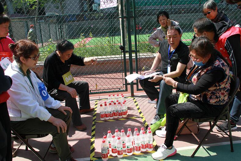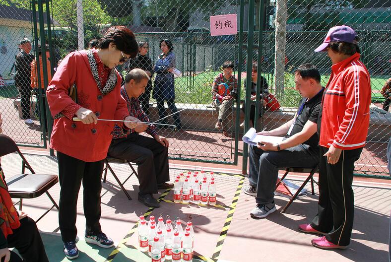 4月27日,山东省新闻出版广电局离退休干部处组织局机关、局属单位50余名退休老同志参加了由趵突泉街道办事处青年东路居委会联合华夏银行济南市南支行举办的2017“华夏杯”青年东路社区老年人趣味运动会。 参加运动会的还有山东省省级机关文教大院服务处代表队和山东广播电视台代表队,共有三个代表队150名运动员。运动会竞赛分个人项目和团体项目,个人项目中有钓瓶子、飞镖投掷、夹玻璃球、定点投篮、推铁环不、趣味保龄球;团体项目有托球接力赛和心心相印。运动会是在团结、欢乐、友谊、和谐的气氛中进行的。通过运动会比赛,各代表队运动员互相交流、互相切磋、加强了联系、增进了友谊,整个比赛处处体现出”友谊第一、比赛第二”的良好风貌,大家一致表示这种联合办运动会的形式好得很,不仅激发了我们老年人运动健身的热情,也增进了各代表队的友谊,是一次团结的、积极向上的、快乐的运动会。