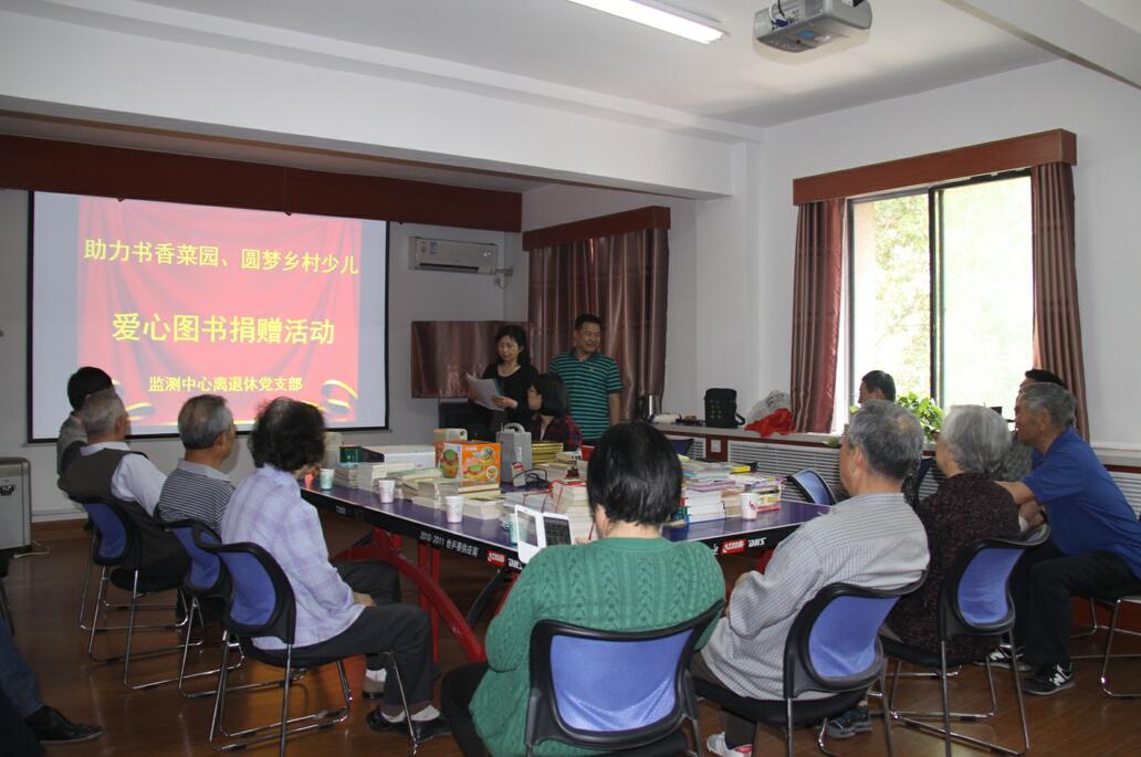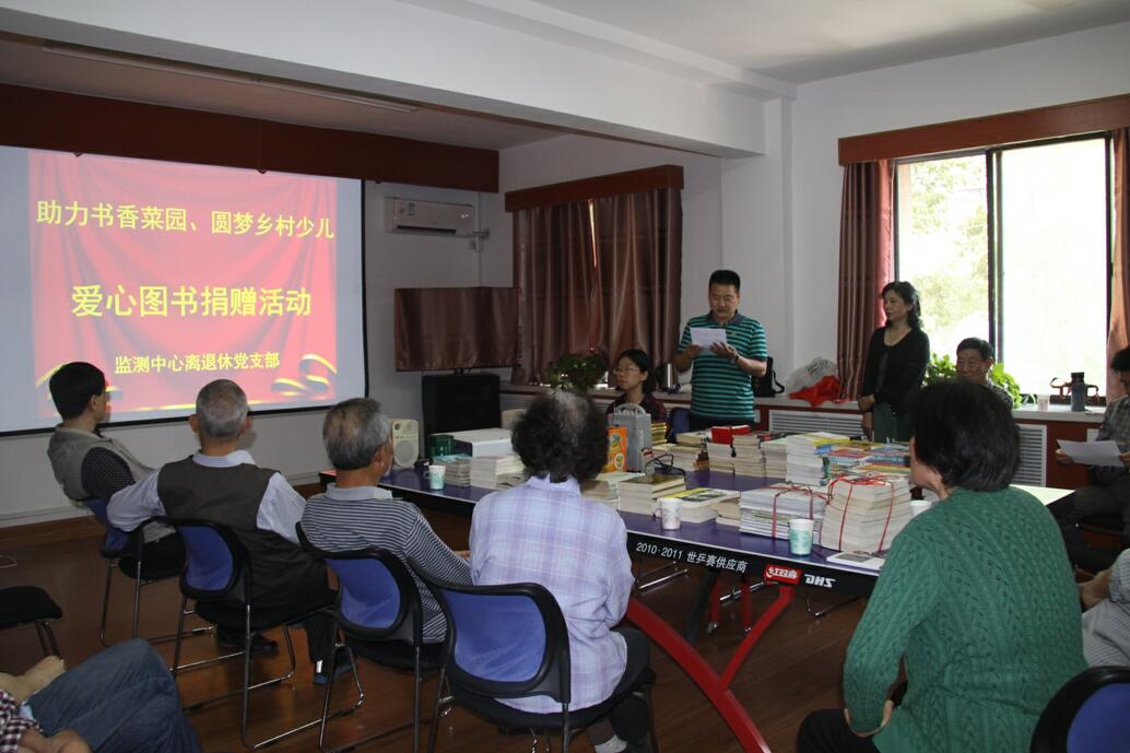5月10日,山东省新闻出版广电局离退休干部党总支所属党支部监测中心离退休干部党支部在山东省新闻出版广电局新闻中心三楼会议室召开党员大会,积极响应山东省新闻出版广电局监测中心在山东莘县张鲁回族镇菜园村任第一书记的王建国发起的《爱心图书捐赠倡议---“助力书香菜园,圆梦乡村少儿”》的倡议,省新闻出版局监测中心离退休干部党支部,包括中波中心和监测中心的离退休党员12人向“菜园村徐之祥农家书屋”和“海棠广场”共捐赠图书232本、便携式扩音器一套和现金200元,为第一书记包村的乡村儿童献爱心。