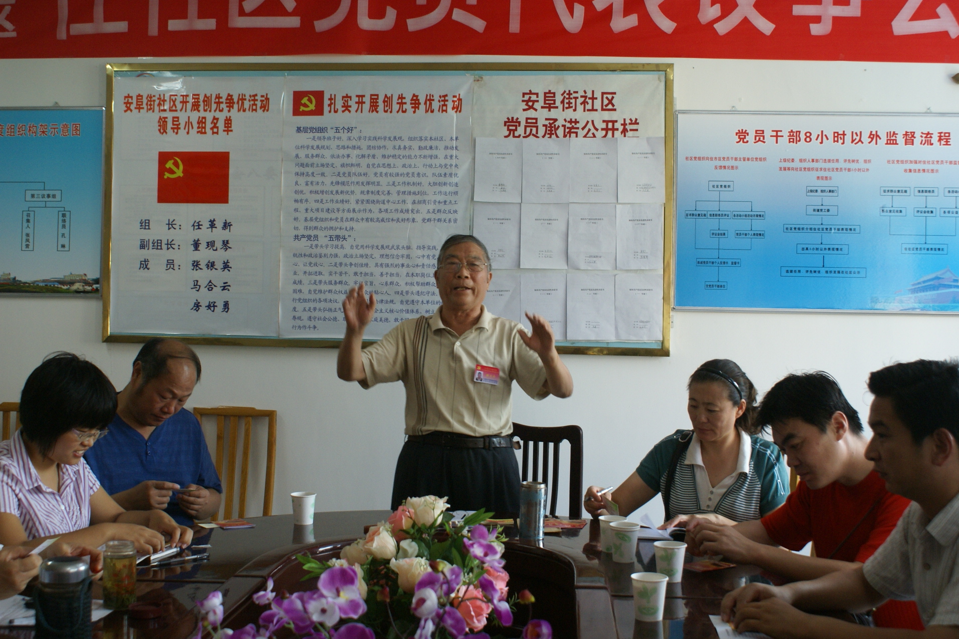“每次到这里来,都受到一次心灵的震撼。”牌坊街社区居委会副主任杜凌说,她25岁时来到社区工作,是老主任带着她各家各户的走访,手把手教给她为群众服务的方法。如今,杜凌也已经成为了做基层工作的行家里手。受到谢立亭影响的不止杜凌一个人,孙士彦老人也是其中之一。他负责社区黑板报的编写,每周都要把谢立亭红色小册子上的内容写到黑板上。他对老谢的做法非常佩服,“这么大年纪,还常年坚持宣传党的政策和思想,他是一个真正的共产党员。”在谢立亭的感召下,已经年过70的老人向社区党支部郑重地递交了入党申请书。