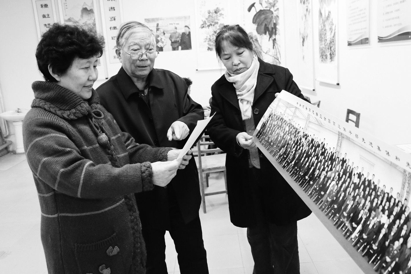 谢立亭向群众展示参加全国离退休干部双先表彰会照片