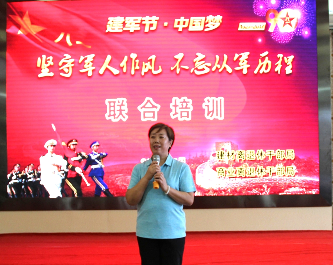 为加强在职干部的教育培养,国资委建材离退休干部局与国资委商业离退休干部局针对在职军转干部多的实际情况,7月27日至28日,对在职干部进行了联合培训。建材离退休干部局局长刘晓玫、党委书记胡燕平和商业离退休干部局局长、党委书记徐明进带领两局在职干部65名(其中34名军转干部)参加了“坚守军人作风,不忘从军经历”的主题培训,主题培训由建材离退休干部局党委副书记、纪委书记池京珍主持。 商业离退局局长徐明进 建材离退局党委副书记、纪委书记池京珍 为了把此次具有独特意义的培训组织得更具特色,培训内容设置坚持继承与创新相结合的原则,给培训增添了新的生机和活力,培训主要安排有培训动员、参观军营、文艺联欢、演讲交流、队列演示和培训总结等内容,让军转干部更多地回忆起军旅往事、军营生活。 颁奖 根据培训安排,建材离退休干部局局长刘晓玫在培训动员会上讲了话。她紧紧围绕“三个着眼”(即:联合培训意义深远,着眼工作创新发展;科学安排培训内容,着眼展现魅力风采;自我加压严格要求,着眼提高能力素质。)进行了培训动员。她指出,组织这次联合培训是深入贯彻落实党中央、习总书记关于做好老干部工作重要指示精神的实际践行、是继承军人优良传统培养过硬作风的具体行动、是深入加强两局学习交流实现共同进步的有力抓手。她要求,培训方式要新颖、内容要丰富,要从“三个结合”上下功夫,即:要把培训与参观军营相结合、要与文艺联欢相结合、要与演讲交流相结合。最后,她真诚勉励大家,一要学习部队的优良传统和过硬作风,把这些好思想、好作风运用于工作中,推进工作无限进步;二要学习他人的能力素质和工作经验,学他人之长补自己之短,谦虚好学、肯于钻研、茁壮成长、增强本领;三要学习集体协作意识和团队精神,善于在每个节目的完美表演中、在队列动作的精准演示中、在各项工作的筹划准备中树立大局观念、增强团队精神、保持协作意识。 两局领导与国旗班合影 培训把参观“天安门国旗护卫队”作为培训的重要内容。“天安门国旗护卫队”是基层部队的典范、是军内外关注的焦点、是国家形象的代表,他们牢固树立“护卫国旗、重于生命”和“心中有信仰、脚下有力量”的坚定信念,不懈努力、刻苦训练、求实创新,练就了过硬素质和顽强作风。两局在职干部在“天安门国旗护卫队”通过聆听护卫队发展历程的情况介绍、参观整齐划一的内务设置和观看准确无误的队列表演,无不被国旗护卫官兵的顽强作风深深震憾和折服,心中再次燃起了对这支绝对忠诚、世人关注和功勋卓著的“国旗护卫队”的无比崇敬。 与国旗班合影 才艺展示是参训人员尤其是军转干部充分展示服务老干部技能的重要平台。两局藏龙卧虎,很多同志一专多能、身怀绝技,他们充分发挥各自优势,立足实际自编自导自演,精心筹备文艺节目。在指定的演出节目中,建材离退休干部局的男生小合唱《人民军队忠于党》、小品《战士的第二故乡》、交谊舞《情深意长》和无伴奏合唱《美丽的草原我的家》,商业离退休干部局的舞蹈《好日子》、口琴演奏《东方红》《天边》、小合唱《七律·长征》《战友之歌》和诗朗诵等8个节目个个形式新颖、聚焦主题、精彩纷呈,赢得了阵阵掌声;一些即兴表演的节目也充满活力、富有特色、高雅大气,令大家赞不绝口。尤其是两局主要领导主动参与的表演,更是把才艺展示推向了高潮。这次才艺展示是一次集学习和提高于一体的“文化盛宴”,既愉悦了身心、又展示了才艺,让大家乐在其中,流连忘返。 建材离退局文艺节目演出 演讲演示是两局军转干部充分交流工作经验和展示军人风采的重要途径。在演讲交流中,管理局离退办王吉演讲的《以军人作风激励自己前行》,她用真情实感讲出了自己对军人的理解、感悟和赞许;建材离退休干部局童玉红演讲的《不忘军人本色,奉献老年事业》、夏以波演讲的《勿忘昨天,实干今天,卓越明天》、陈慧丽演讲的《不忘初心,永葆本色,做合格老干部工作者》、丰照明演讲的《“奉献精神”永远是军人绽放光彩的旋律》,商业离退休干部局江玮演讲的《保持本色,不忘初心,继续前进》、秦海涛演讲的《穿过军装,永远军歌嘹亮》、赵彦红演讲的《八月的印记》等7名军转干部从不同侧面和角度,用一些鲜活、具体的事例和数据给大家分享了自己从一名革命军人向老干部工作者转变的过程、对老干部工作的理解和在老干部工作中积累的一些经验做法。在单个军人队列动作的演示中,双方军转干部各组成一个队列班进行了现场演示,所有参训人员对队列演示人员洪亮的口号、铿锵有力的步伐和指挥人员果断的指挥才能惊叹不已!并深深感到,他们虽然离开部队多年,但那种挺拔的军姿、过硬的作风、协作的精神依然深深植于他们心中,这也是他们永远不变的本色和永不磨灭的气质。两局在队列动作演示结束后进行了合影留念。 商业离退局文艺节目演出 根据培训安排,商业离退休干部局局长、党委书记徐明进作了培训总结。他对培训的筹划准备、组织实施和具体安排给予了充分肯定。他指出,这次培训不仅是一次爱国主义教育、国防教育,而且还是一次主题党日活动,他用“漂亮”、“丰硕”和“期盼”三个词对此次联合培训的成