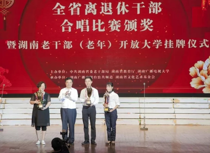 金秋送爽,硕果飘香。在全省上下热切期盼党的十九大胜利召开之际,9月26日上午,由中共湖南省委老干部局、湖南省教育厅、湖南广播电视大学主办,湖南广播电视台公共频道、湖南省文化艺术基金会承办的全省离退休干部“喜迎十九大·颂歌献给党”合唱比赛颁奖暨湖南老干部(老年)开放大学挂牌仪式在湖南大剧院举行。省政协原主席刘夫生,省委常委、省委组织部部长王少峰,老同志董志文、许云昭、沈瑞庭、刘玉娥、朱东阳、罗海藩、唐之享、范多富、龙国键、詹顺初出席。 王少峰为湖南老干部(老年)开放大学授牌,并与省委组织部副部长、省委老干部局局长、省委离退休干部工委书记崔永平,省委教育工委副书记、省教育厅党组成员王建华,湖南广播电视大学党委书记陈建民、校长彭元一起点亮了湖南老干部(老年)开放大学启动仪,为获奖单位颁奖。荣获全省离退休干部“喜迎十九大·颂歌献给党”合唱比赛一、二等奖的10个团队以及长沙“五老”金牌讲师团共同为大家送上了一场精彩的视听盛宴。省委老干部工作领导小组成员单位有关负责同志、省委离退休干部工委委员、市州委老干部局和电视大学负责同志、省直及中央在湘单位老干部工作部门负责同志和离退休干部代表共1300余人观看了演出。 夕阳正红,人生出彩。全省离退休干部“喜迎十九大·颂歌献给党”合唱比赛自今年7月启动,共历时3个月。各地各单位高度重视、认真组织,广大离退休干部踊跃参与,热情高涨。14个市州和部分省直及中央在湘单位的217支参赛团队,近万名老同志参加了比赛。经过海选、复赛和决赛三个阶段,采取专家评审和网络投票相结合的方式,最终评选出一、二、三等奖和若干单项奖。一段段耳熟能详的优美旋律、一首首脍炙人口的红色歌曲,回顾了伟大的中国共产党不忘初心、砥砺前进的奋斗历程,展示了党的十八大以来政通人和、繁荣发展的美好生活。老同志们以饱满的热情、嘹亮的歌声唱出了对党的无限忠诚、对祖国的美好祝愿、对事业的诚挚热爱,展现了积极乐观、健康向上的精神风貌和胸怀中国梦、永远跟党走的炽热情怀。 创新引领,永葆本色。举办全省离退休干部“喜迎十九大·颂歌献给党”合唱比赛是宣传推广湖南老干部(老年)开放大学的重要载体。近年来,中央和省委出台了一系列文件,对加强老干部(老年)教育工作提出了明确要求。湖南省委老干部局、湖南省教育厅、湖南广播电视大学积极响应中央号召,坚决落实省委要求,主动适应协调推进“五位一体”总体布局、“四个全面”战略布局,顺应“互联网+”时代的发展趋势和人口老龄化的新形势新要求,共同发起成立湖南老干部(老年)开放大学,旨在通过老干部引领带动全社会老年群体老有所学、老有所乐、老有所为,实现人生价值,展现更大作为。湖南老干部(老年)开放大学不仅为老同志提供了一个学习知识、接受教育的平台,更成为了他们交流思想、永葆本色的重要阵地。采用线上线下相结合的方式,充分利用离退休干部党组织体系、关工委以及老科协等涉老社会组织,以离退休干部为主体,以思想政治教育为引领,推进“两学一做”学习教育常态化制度化,引导老同志为党和人民的事业增添正能量,做全面从严治党的坚定支持者和模范践行者。湖南老干部(老年)开放大学从今年3月份平台上线试运行至9月初上线学习人数已经达到了3.5万余人;开设了500多门公共课,涉及党政、历史、人文、生活、保健等多个方面,给老干部(老年)提供丰富的学习资源;开设了党建、在线主题党日等栏目,为老干部党员开展党组织活动、党员教育提供了重要阵地。 |