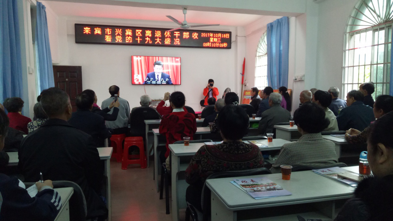 18日上午9点零5分,党的十九大开幕会国歌响起,在来宾市兴宾区老干部活动中心二楼活动室,集中收看十九大开幕会盛况的60多名离退休干部代表全体起立,唱响国歌。退休老同志刘德章说:以前讲没有中国共产党就没有新中国,现在我更加坚信中国共产党能建设好中国,带领全国人民奔小康。85岁的离休干部陈日快说,收看党的十九大开幕会,他感到很兴奋、很激动,很久没有唱国歌的他,是含着眼泪唱完国歌的。不忘初衷,牢记使命,就是要坚持为人民服务。陈老说,共产党不忘初心,坚定为人民服务的宗旨,能有这样的党中央领导全国人民,我们离退休老干部很放心。参加收听的离退休老同志纷纷表示认真学习宣传十九大的会议精神,紧密团结在以习近平为总书记的党中央周围,继续发扬离退休干部的资源优势,退而不休,不忘初心、继续前行,为党和人民的事业增添正能量。 党的十九大开幕会国歌响起,全体起立唱国歌 离退休老干部集中收看党的十九大开幕会直播盛况 |