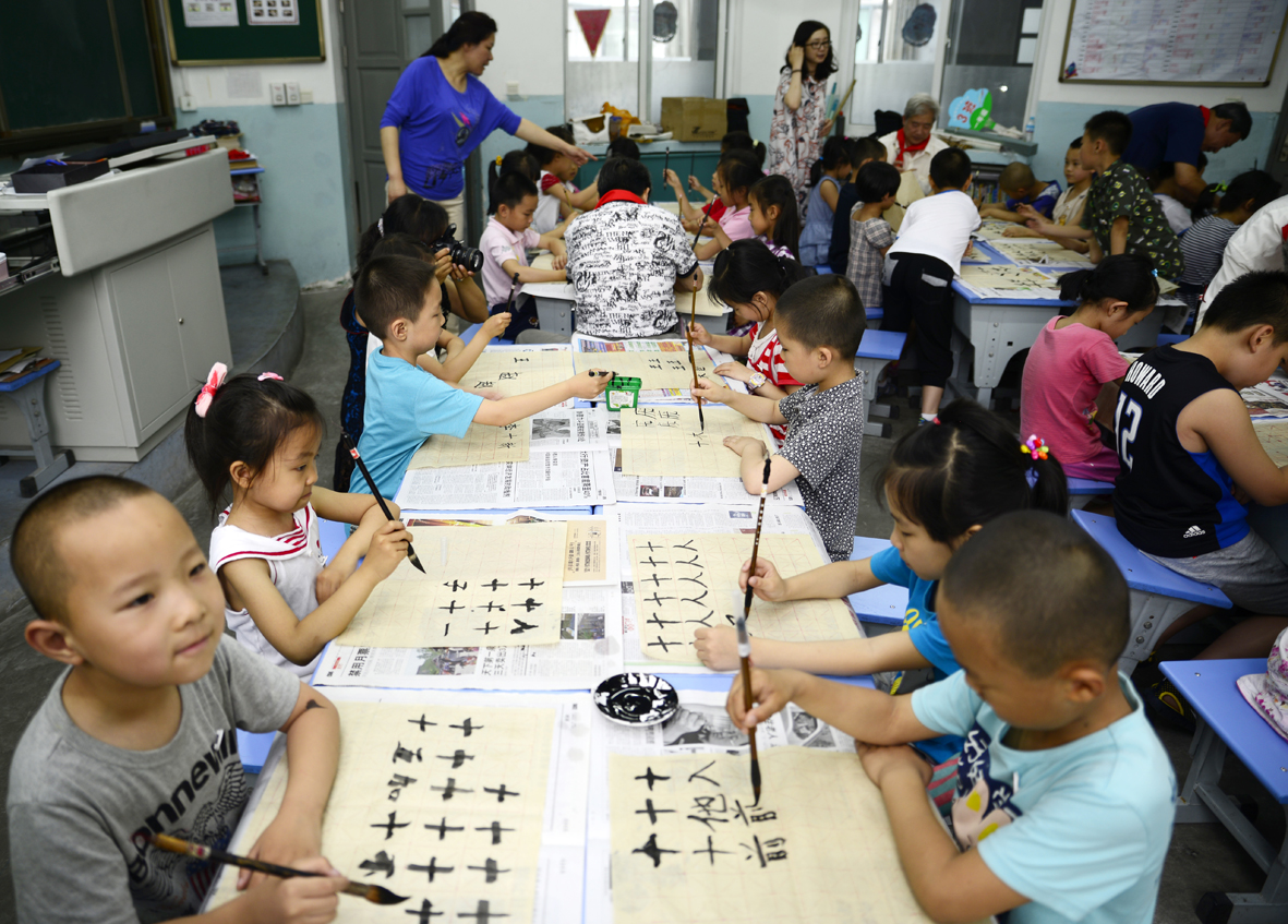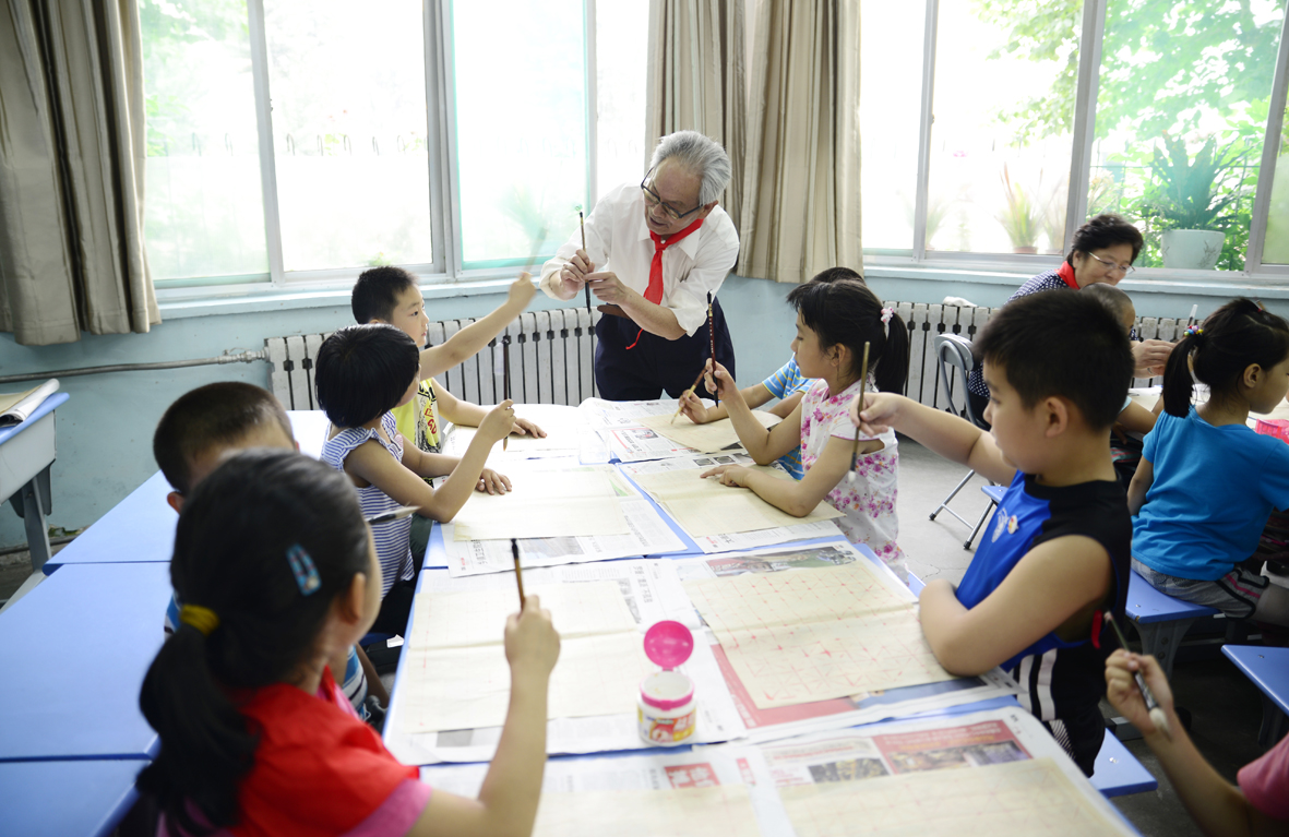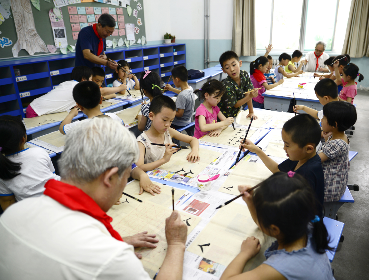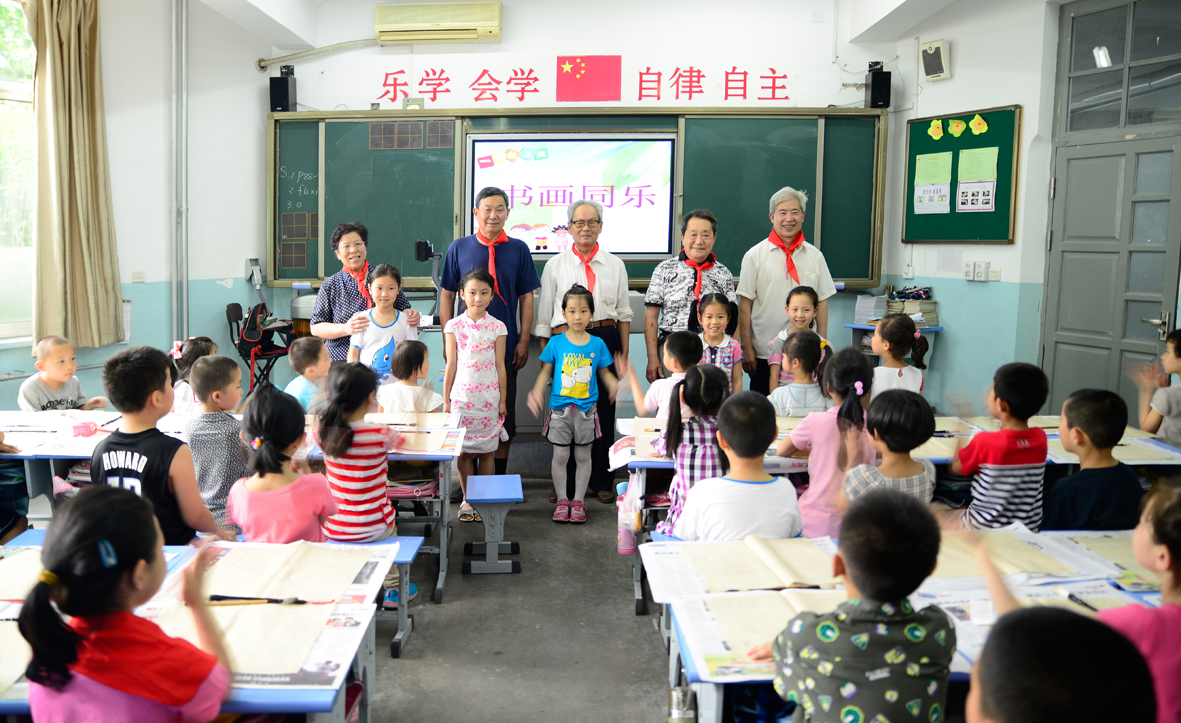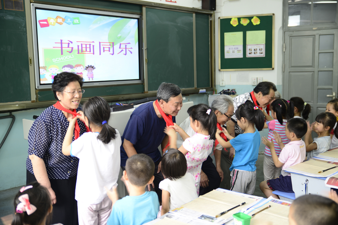 为弘扬中国传统文化,创造良好的学校文化氛围,激发学生学习书画艺术的兴趣,6月7日下午,老干部之家书画协会携济南胜利大街小学举办了老干部书画家进校园活动。协会五位老书画家走进课堂亲身讲授书画艺术知识,给小同学们上了别开生面的一课。 活动开始前,为感谢老书画家们的到来,小同学们专门为五位老书画家献上了红领巾。老书画家们都被孩子们这天真又懂事的表现逗乐了。活动正式开始,首先由赵绍南老先生给同学们讲解了什么是书法,书法的分类,还有如何握笔等知识。孩子们都表现的兴趣盎然,听的是津津有味。接着开始分组实践,五位老师分别带领一组进行写字练习,小同学们都铺好了纸、拿起了毛笔、倒好了墨,一股成竹在胸的样子,好像个个都要来一幅大作似的。孩子们有兴趣,五位老师教导更是非常细心,也非常有耐心,边讲解边书写,给孩子们做好示范,还手把手的交给小同学们握笔的正确姿势。在五位老师专业而又细致的教导下,小同学们都很努力的写好每一个字,好像非要分出个高低似的。 不一会的功夫,小同学们就把自己的一张宣纸写满了毛笔字,虽然在较短的时间内,他们还不能完全掌握书法的要领,但通过五位老师的指点,小同学们还是增强了对书法艺术的理解和认识。活动最后,老书画家张俊凤女士还给孩子们简单介绍了国画的知识,孩子们也都认真的听讲完毕。 下课铃响起,本次白发童颜墨飘香——老干部书画协会走进校园活动也圆满结束,参加本次活动的刘玉贤老先生说:“看到孩子们很开心啊,他们让我想起了自己的童年,能给孩子们讲讲书画艺术知识,既能帮助孩子们掌握中国传统文化,有能给自己带来回忆的乐趣,以后再有这样的活动,我一定还得参加。” |