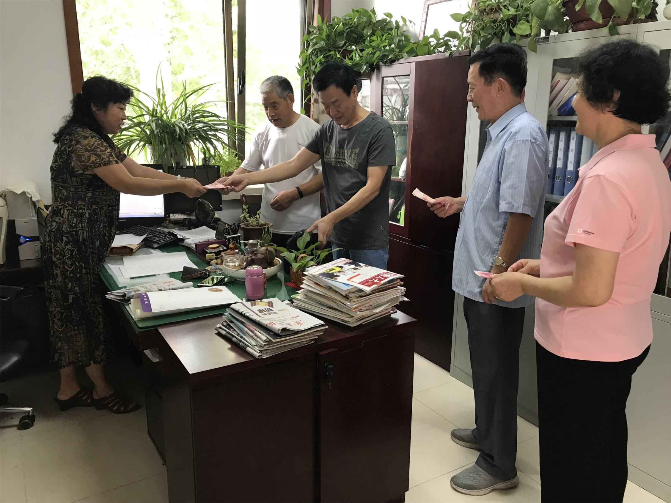 8月29日上午,省新闻出版广电局第一、第二离退休干部党支部组织离退休干部为省受灾地区捐款,短短两小时就捐款11800元。 洪灾无情人有情,大灾面前有大爱。老同志们接到自愿捐款的通知后,纷纷在第一时间,拿着款项踊跃来到捐款地点献爱心。他们有的在医院住院,委托老伴交上捐款;有的在医院陪家属住院,趁送饭之空来到捐款地;有的腿脚不便的离休老同志,用微信方式捐款;有的离休干部让家属推着轮椅前来捐款;还有的离休干部让孩子到捐款现场,要求按照最高数捐款;还有的因各种原因不在本地,纷纷用微信捐款;还有的得知捐款时间晚了,着急的表示,能否再交上。老同志们心系灾区、踊跃捐款的爱心精神,感动着每一个工作人员。他们用自己的绵薄之力帮助灾区人民尽早战胜困难,摆脱困境,重建家园。