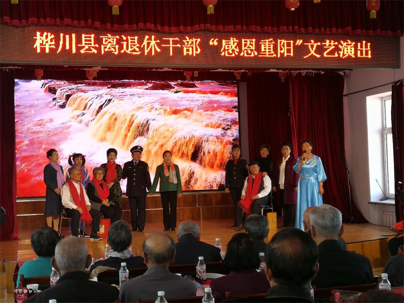 10月17日上午,黑龙江桦川县离退休干部党工委举办离退休干部“感恩重阳”文艺演出, 庆祝传统节日重阳节。县领导徐宏君、杨宏志、孙瑛林、赵文华与百余名老干部、老同志共度佳节。 桦川县委常委、组织部长徐宏君代表县委、县政府致辞,充分肯定了桦川县委老干部局的各项工作,并祝全县老年朋友们身体健康、阖家欢乐。徐宏君希望桦川县离退休干部和老干部工作者再接再厉,为“五新”桦川做出新的更大的贡献。 随后,县领导走上舞台,共同为离退休干部集体庆祝生日,为老人们分发蛋糕,桦川县实验小学的孩子们为老人们敬献鲜花,祝愿他们健康长寿,生活幸福。 演出在朝鲜族舞蹈《祝妈妈健康长寿》中拉开帷幕,男声合唱《老年大学颂》、情景剧《孝敬父母》、诗朗诵《贺重阳》《老有老的骄傲》、大合唱《夕阳红》等精彩节目轮番上演,展现了离退休干部良好的精神风貌和健康向上的正能量,现场热闹而温馨。 大家纷纷表示,此次活动体现了党和政府对老同志的亲切关怀,一定不忘初心,一如既往地为党和人民事业传播好声音、增添正能量,为建设“五新”桦川做出新的更大的贡献。 |