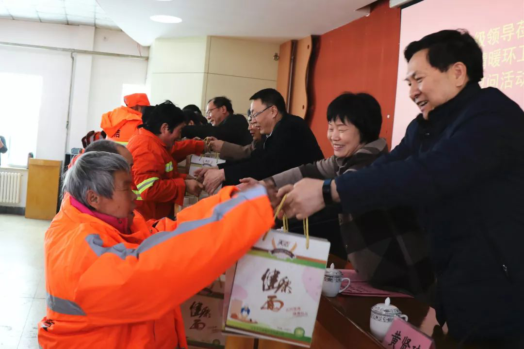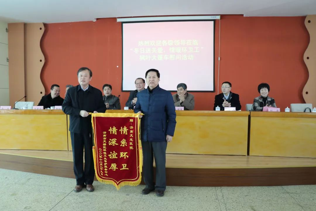 12月29日,济南市天桥区“枫叶大篷车”老干部志愿团到区环境卫生管护服务中心开展慰问活动,向默默奉献、辛勤工作的环卫工人们送上新春祝福。省委老干部局副局长、离退休干部工委副书记吕德义,市委老干部局副局长谷博军,区委常委、副区长韩利师,区委常委、组织部部长田俊林,“枫叶大篷车”老干部志愿团团长、区政协原副主席郭继清,区委组织部副部长、老干部局局长、离退休干部工委书记刘清,区环卫管护服务中心主任李杰等领导同志出席活动。 慰问活动中,区委常委、组织部部长田俊林代表区委、区政府致欢迎词,省委老干部局副局长、离退休干部工委副书记吕德义作重要讲话。吕局长充分肯定了“枫叶大篷车”老干部志愿团在传递社会正能量、关爱帮扶困难群体等方面做出的贡献,并希望天桥区积极探索做好离退休干部工作的新路子,勇于创新,大胆探索,积极实践,脚踏实地为老干部办实事、做好事、解难事,真正做到让党委放心、让老干部满意。 活动现场,“枫叶大篷车”济南天志医院医疗服务队的医疗专家为40名环卫工人进行健康体检,赠送了爱心体检卡、节日慰问品、爱心助学礼包等总价值约34万元的慰问品;优秀民营企业家、“枫叶大篷车”志愿团成员万富永向环卫管护服务中心赠送了两台电脑,改善中心办公环境;“枫叶大篷车”老干部志愿团书画支队郭继清、李德铃等7名书画家,为环卫工人现场题写了百余幅新春对联及“福”字。 “枫叶大篷车”老干部志愿团已连续7年开展慰问环卫工人活动,天志医院医疗服务队在黄贤琦院长的带领下,第5次来到环卫管护服务中心为环卫工人送温暖。为了向一直以来坚持送温暖、送健康的医疗服务志愿者们表达感激之情,环卫管护服务中心向天志医院献上锦旗,院长黄贤琦发表感言,表示将继续组织医疗专家参与志愿服务活动,发挥专业优势,不断传递爱与正能量,尽己所能将温暖送进千家万户。