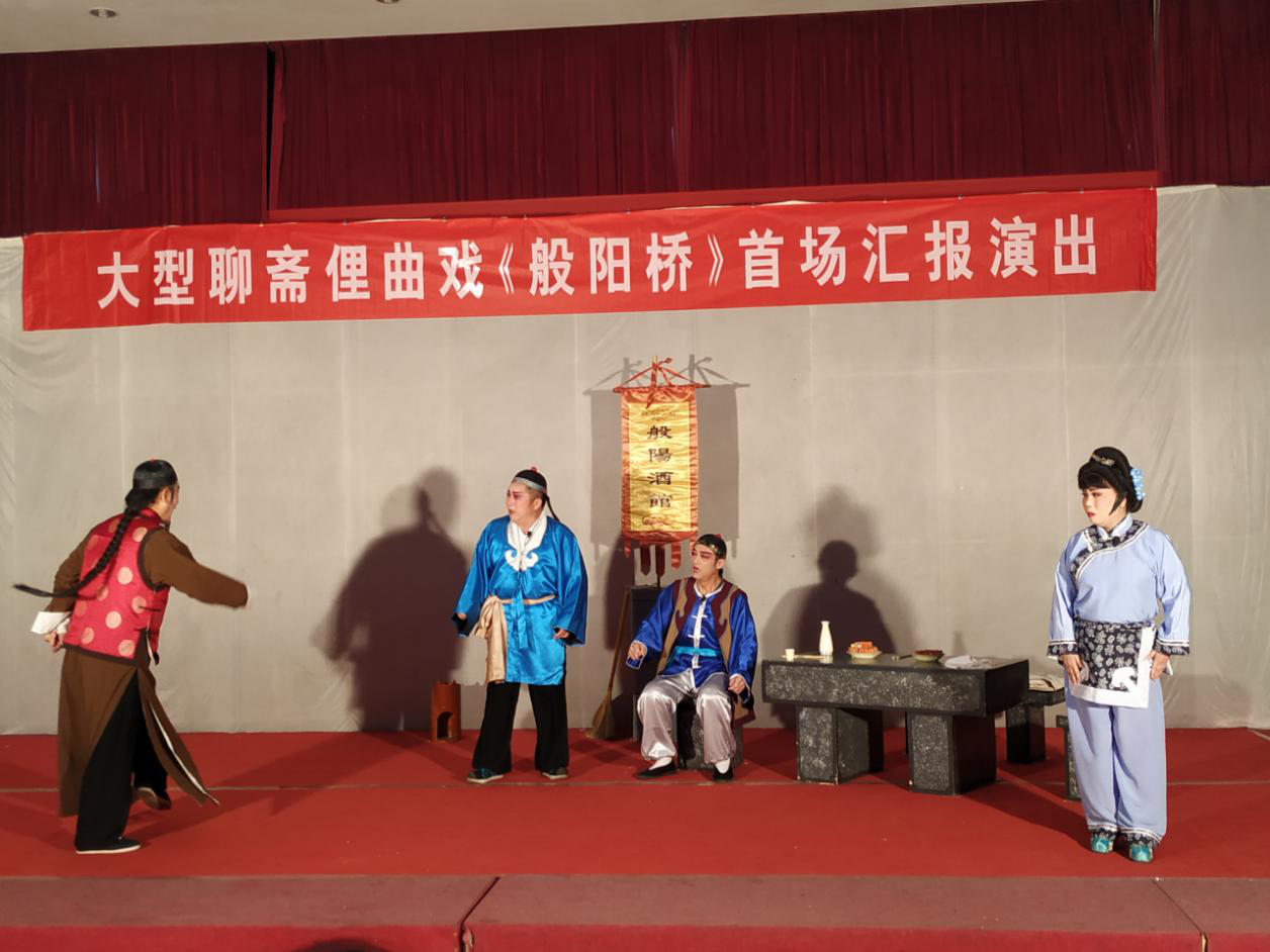 “前面不远般阳景,不炫炫衣巾,意难尽……”旋律响起,主角高大兴得意洋洋地出场了。近日,由淄博市淄川区老干部社团编排的大型聊斋俚曲戏《般阳桥》首场演出在区老干部活动中心拉开帷幕,演员们精湛的演技、紧跟新时代弘扬正气的剧情赢得了观众的阵阵掌声。 《般阳桥》改编自《聊斋志异·布客》,讲述的是奸商高大兴坑蒙拐骗,无德敛财,折了阳寿,死难临头。经与前来捉拿他的鬼差交涉后,延了一个月的死期。自此,高大兴决定改邪归正、弃恶从善,重新做人。于是,他耗尽家财,准备为老百姓修一座桥,取名“般阳桥”。他从善修桥的义举感动了阎王爷,阎王爷下赦令,让他修完般阳桥,回报父老乡亲。为此,他也得到了好报。该剧宣扬了积德行善,终有好报的伦理,警示人们要弘扬正能量,行善积德济世。 该剧是由一支两次荣获“泰山文艺奖”的民间剧团——聊斋俚曲剧团自编自演创作而成,它是5名老干部为传承弘扬非物质文化遗产聊斋俚曲而牵头建立的老干部社团,他们以传承蒲文化为己任,创作了大量宣传社会主义核心价值观、弘扬正能量的文艺作品。目前,该剧团有演员40余人,平均年龄63岁,年纪最大的演员已近80岁。剧团坚持每年至少推出一部新戏,已先后创作演出了《求骂》《丫头大主任》等10余部剧目,相继荣获首届山东地方戏新创作小戏展演二等奖、第十届中国艺术节山东省“星光奖”金奖、“山东省十佳庄户剧团”等殊荣。据悉,《般阳桥》将在2019年淄川新春戏会上进行巡演。 |
