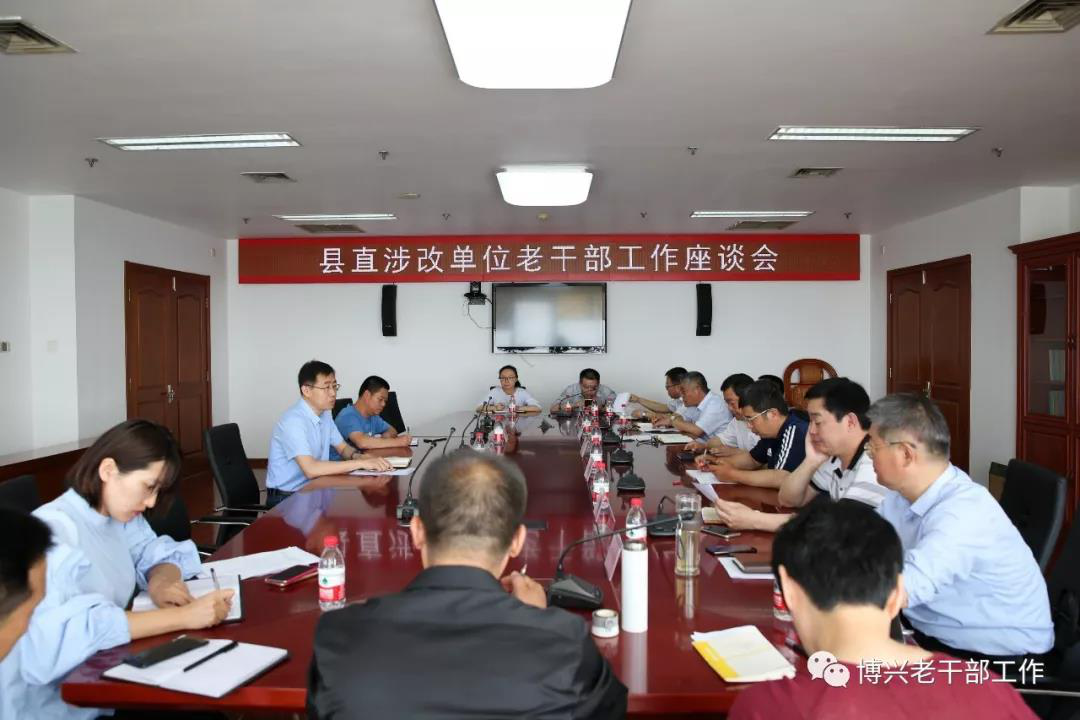 为进一步做好机构改革后离退休服务管理工作,5月16日上午,滨州市博兴县在行政中心19楼会议室,召开了县直部分涉改单位老干部工作座谈会。县发展和改革局、教育和体育局、工业和信息局等7个单位的分管领导和老干部办公室主任参加了会议。 会上,7个单位的分管领导就本单位老干部移交、转接、合并情况及老干部服务管理、党建工作逐一进行了汇报,并就当前老干部工作中遇到的问题提出了看法和建议。县委组织部副部长、老干部局局长高怀青同志,就做好机构改革中的老干部工作进行了强调。他指出,在这次机构改革中,各涉改单位要深入学习贯彻习近平总书记、省委书记刘家义关于老干部工作的重要指示精神,要从讲政治、讲大局的高度,认真做好老干部移交、转接、合并工作,确保老干部服务管理不断线,老干部服务保障水平不降低,老干部拥护改革、思想稳定。