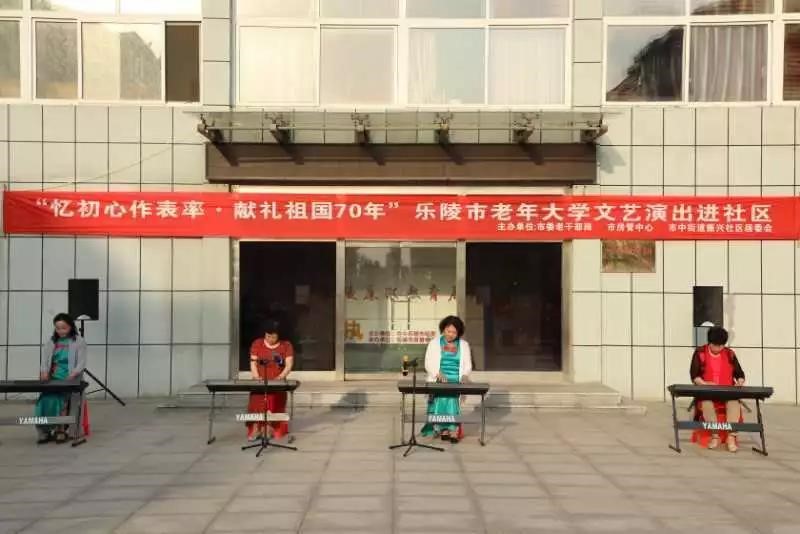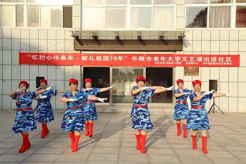德州乐陵市委组织部、宣传部、老干部局组织全市离退休干部开展以“忆初心作表率·献礼祖国70年”为主题,以“一个系列、一场汇演、文影书画三展、文艺演出三进”为主要内容的庆祝活动。 6月1日下午,乐陵市老年大学走进振兴社区枣城家园小区,为居民送上了一场视听盛宴。 演出在舞蹈《红旗飘飘》中拉开帷幕 葫芦丝、古筝、电子琴等乐器表演 舞蹈《烟花三月》《咱当兵的人》 表演唱、旗袍秀、太极拳表演 节目最后,全体人员合唱《我和我的祖国》 全体演职人员合影 居民们纷纷表示,演出很精彩,丰富了日常生活,感谢老干部局、老年大学的演职人员,希望以后有机会再次观看。 |