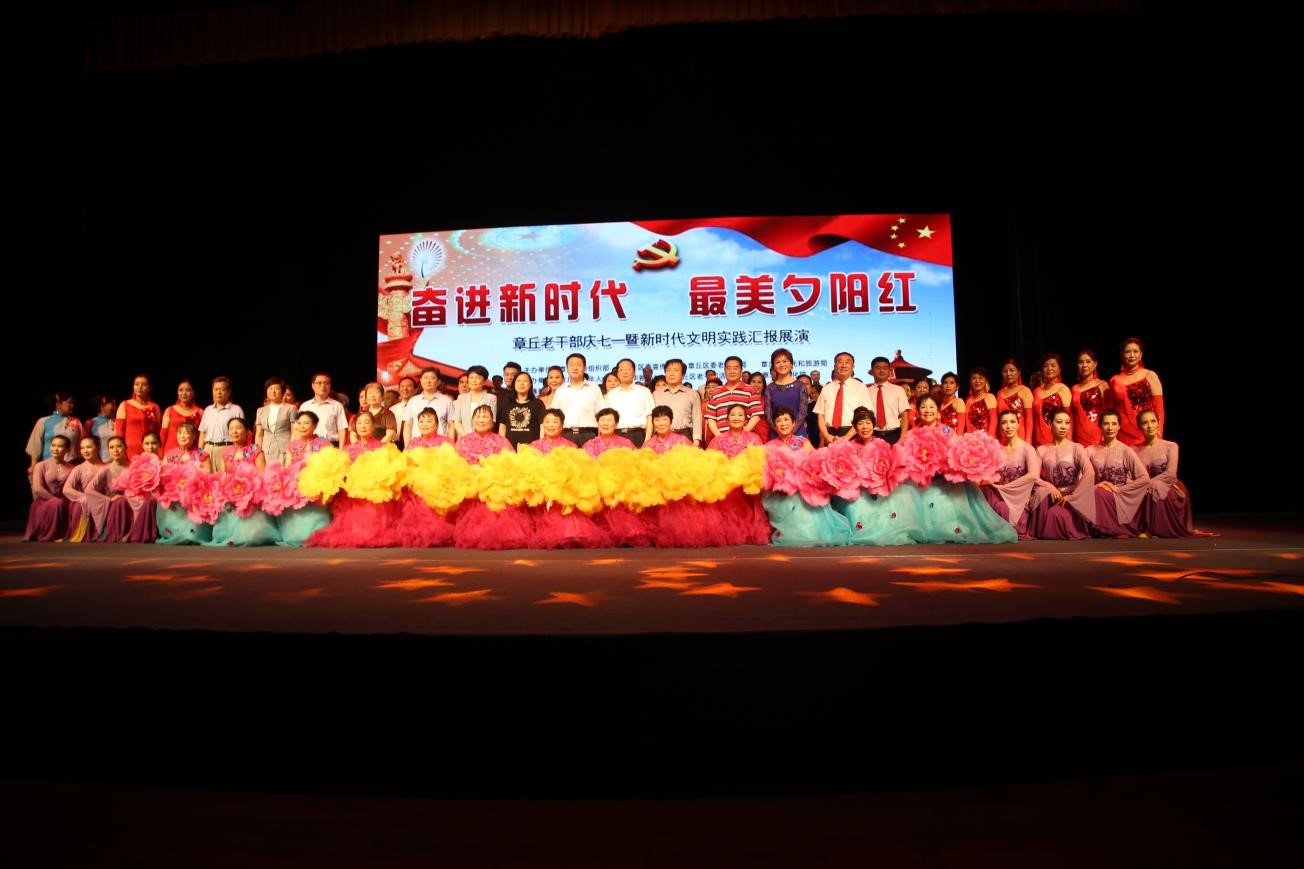 为献礼党的98岁生日,庆祝济南市章丘区老年人大学建校30周年, 6月25日下午,在区文博中心群艺馆一楼音乐厅,章丘区举办“奋进新时代·最美夕阳红”老干部庆七一暨新时代文明实践汇报展演,展现老年人大学教学成果,助力新时代文明实践。 本次展演由区委组织部、区委宣传部、区委老干部局、区文化和旅游局共同主办,区老年人大学、区老干部活动中心和区文化馆承办,并邀请了济南市老年人大学部分学员参演,即展现了学员们的文艺,又促进了学员之间交流学习、增进友谊。 济南市委老干部局副局长亢文、济南老年人大学副校长李晓钟,章丘区委常委、宣传部部长李宝燕,区委常委、组织部部长滕永军,区人大副主任柴启德,区政协副主席韩军,原副市级老领导郭现和、孟庆珍,区委宣传部、区委老干部局、区文化和旅游局相关负责人出席活动。区委组织部副部长、老干部局局长魏东作致辞。各镇街老干部办公室主任、区直部门老干部(政工、人事)科科长、区老年人大学部分学员和部分热爱文体活动的老干部,共计400余人观看了演出。 汇报展演在歌舞《走进希望的新时代》中拉开帷幕,表达了章丘广大老干部踏着新时代、新征程的时代旋律,热情谱写新时代文明实践崭新华章的信心和决心;拉丁舞《舞动青春》和时装表演《摩登之夏》,展现了新时代老干部健康的心态,将新时代老干部的自信心和精气神演绎得淋漓尽致,给人以美的享受;在戏曲联唱中,老干部的一颦一笑、一招一式,为我们展现了精湛扎实的戏曲功底;情景诗朗诵《壮丽辉煌三十年》,讲述了30年来章丘区老年人大学的光辉历程;山东快书《陈老单上大学》,鲜活有趣、惹人捧腹,从侧面反映出老年人大学已成为广大老干部学习交流、文化养老的精神家园,深受喜爱;《鲁韵情》《我的祖国》《梨花颂》《映山红》《共圆中国梦》等,或是舞蹈,或是歌曲,或是合唱,老干部们各有各的精彩,各有各的本领,不同的表演形式更是赢得现场观众的阵阵叫好,充分展现了新时代广大老干部昂扬向上的精神风貌,表达了对党的无限热爱和美好祝福;《龙乡陶韵》中,老干部们轻盈优美的舞姿、绚丽多变的服饰,再现了章丘辉煌灿烂的龙山文化和黑陶艺术,饱含着对中华民族从古老文明走进新时代、即将实现伟大复兴中国梦的期盼与祝福。 近两个小时的演出,精彩纷呈、喝彩连连,整个现场一片欢乐祥和的海洋。展演结束后,领导与演员们合影留念。 下步,章丘区委老干部局将认真贯彻习近平总书记关于用心用情做好老干部工作的指示精神,以党的建设为统领,以平台阵地建设为依托,以队伍建设为保障,以正能量活动为主线,优化服务、完善机制,团结组织广大老同志以更加振奋的姿态、更加火热的激情,投入到新时代文明实践中,为章丘各项事业的繁荣发展增添新动力,为建设济南东部新区作出新贡献! |