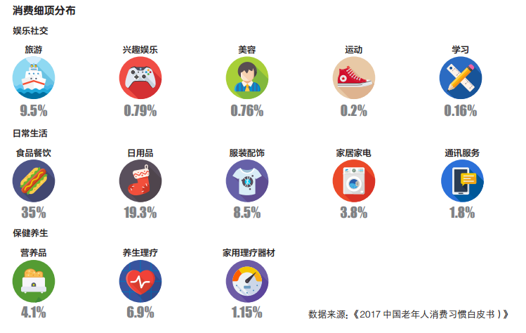 | 几年前,人们对于老年群体消费的认知,似乎还停留在“省吃俭用”这样的消费观中。但随着中国第一代独生子父母渐渐迈入老年生活,并成为这个群体消费者主体时,各种消费习惯开始出现迭代升级。 通过观察当下市场不难发现,广场舞大爷大妈几天就要换上一套新队服,各种昂贵保健品购买时毫不含糊,旅游足迹遍布世界各地……越来越多诸如此类的市场现象也开始让商家们意识到,老年人的消费实力已经被低估了。对于现在的老年群体来说,可谓称得上“有钱又有闲”。这一群体早已摆脱了满足温饱的基本生理诉求,开始追寻物质与精神上的更高需求。对于一大部分老年消费者来说,一方面有着不亚于年轻人爱美爱潮流的心,另一方面在价格敏感度上又低于不少年轻人。所以在一些专家眼中,中国的储蓄年龄结构集中在中老年层身上,未来老龄产业将会是体量最大的新经济。 老年消费群体基础画像 随着老年人口的不断增加,我国已步入老龄社会。数据显示,截至去年底,我国60周岁以上老年人口超过2.4亿人,占总人口的近两成,已接近“90后”和“00后”的总和。一些城市的老龄化结构更加凸显,比如作为全国超大城市的北京,其户籍老年人口已经达330万左右,老龄化已超24%。中国老龄科学研究中心副主任党俊武也对记者表示,北京已进入超老龄阶段。 面对如此庞大的群体,各方面也预测我国将成为全球老龄化产业市场潜力最大的国家。从消费能力层面来说,我国老年消费人群正逐渐呈现出消费需求广泛、消费观念不断升级的特点。在全国消费升级的大背景下,老年消费升级态势尤为明显。市场空间方面,根据研究机构预测,到2020年,全国老年消费市场规模将达到3.3万亿元,未来市场空间巨大。 对于老年群体来说,消费诉求在某些方面比较明显。比如面对身体上的日益衰弱,以及精神上的孤独,健康和陪伴已成为大部分老年人重要的消费目的。由于与子女分居,以及易受到子女及社会忽视,孤独感已成为老年人最大的困扰,众多陪伴型、社交型的老年产品及服务也相继问世,不过也成为老年人最容易上当受骗的攻破口。 不能忽视的是,部分老年人因疾病等问题已丧失生活能力,面临生理机能退化状况,其健康状况逐步下降,因而其对护理服务需求也更为迫切。而由于我国家庭规模小型化,老年人长期护理成本居高不下,养老机构发展滞后,造成老年人护理服务供给不足,形成了失能、半失能老人长期护理服务供需失衡的局面。2015年,全国城乡失能、半失能老年人占老年人口的比例达到了19%,总数约为4063万人。 老年人消费习惯探究 相比于月光族的年轻人,老年人消费潜力巨大。据中国家庭金融调查报告统计,2017年家庭月收入超过4000元的老人已超过1.06亿元,其中1600万老人的家庭月收入超过了10000元。和许多无房无车的年轻人相比,大多数老年人拥有一套或多套住房。 同时,根据《中国康养产业发展报告(2017)》显示,中国城市45%的老年人拥有储蓄存款,老年人存款余额2016年超过17万亿元,人均存款将近8万元。全国老龄办认为,中国老年产业的规模到2020年和2030年将分别达到8万亿元和22万亿元,对GDP拉动分别达到6%和8%,老年产业将成为名副其实的国家经济支柱之一。 此外,老年人的线上消费能力增长强劲,京东数据显示,老年用户消费力明显高于全站水平,虽然老年用户数量只占全站用户总数的2%,但是2017年老年用户的人均年消费额相比全站高出1.3倍。 那么老年人的消费诉求是什么?根据数据显示,老年人的日常消费主要集中于娱乐社交、疾病管理、养生健康及日常生活等四个方面。以食品餐饮、日用品为主的日常生活品消费依然是老年消费的核心,其中食品、日用品、医疗是老年消费群体三大主要消费需求,同时,服装、餐饮、旅游、营养保健、娱乐正在成为老年人消费群体的新需求点。 各行业老年人消费情况 1.健康——老年人在健康方面消费意愿高 由于大部分老年人或多或少患有慢性疾病,药品一直成为一部分老年人赖以维持生命的重要支撑。近日,由中国老龄科学研究中心发布的《老龄蓝皮书:中国城乡老年人生活状况调查报告(2018)》显示,我国城市老年人平均医药费支出2341元,占到消费总支出的11.6%;农村老年人平均医药费支出1395元,占到消费总支出的15.7%。 京东数据显示,2017年上半年,老年人商品销售以保健品类为主,销售占比25.8%,增幅达到438.2%,对老年商品销售增长的贡献率达到55.1%。 此外,根据《2017中国老年人消费习惯白皮书》调研发现,被访老人中,约有40%有保健品消费,其中64%的消费者支出在3000元以内。受访老人考虑未来在疾病管理和营养品购买上增加支出的分别占43%和29%,均远高于其他品类。 问题:随着我国老年人规模的日益庞大,以及空巢、高龄、失能老年人的增加,老年医药用品会持续增长。但目前,老年健康消费却成为诈骗犯罪的重灾区,由于老人易受高额利息的蛊惑,再加上老无所依心有不安,以及金融防范风险意识不强,使得针对老年人的诈骗有机可乘,众多以保健品为名的诈骗,通过高价售卖劣质保健品,再向客户推销“健康益基金”,进行非法敛财,致使老人受骗损失惨重。 2.旅游(携程)——旅游成老年消费新亮点 “银发游”已成为旅游市场开发的潜在热点。国家老龄委调查显示,我国每年老年人旅游人数占全国旅游总人数的比重超过20%,淡季