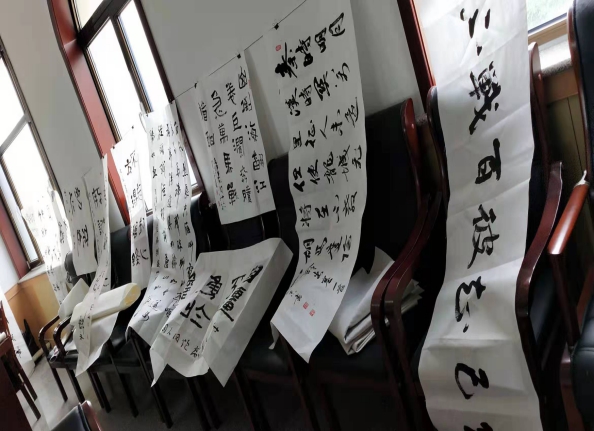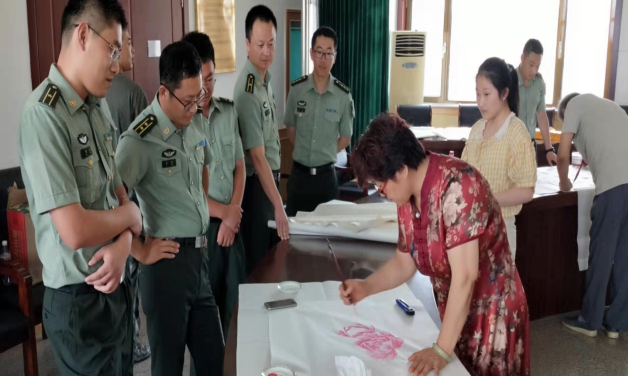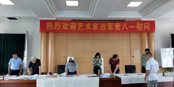 八一建军节来临之际,7月29日下午,济南市章丘区委老干部局组织芳华剧场书画轻骑兵老干部书画家到驻章某部开展送书画进军营活动。 老干部书画家们发挥精湛的技艺,把对军人的敬意及祝福倾注于笔端,精心创作出了“精忠报国”“龙马精神”“砥砺前行”等展示军旅特色的80余幅优秀书画作品,受到现场部队官兵的高度赞赏。老干部们用书画艺术的魅力及寓意为部队官兵送去了美好的祝福,赞扬了新时代军人奋发进取的时代风采!现场洋溢着浓墨重彩、翰墨飘香、军民融合的和谐氛围。 区委老干部局本着充分发挥老干部特长优势服务社会,弘扬正能量的原则,以庆祝建军节为契机,通过组织开展各类活动,向社会传递拥军、崇军,军政军民团结同心、和谐共建的时代声音。 |