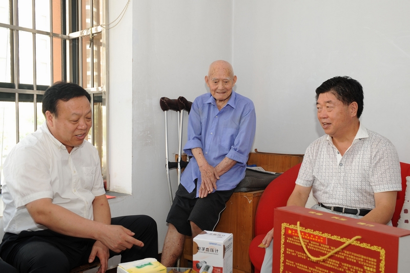 随后,谢玉堂一行到老退伍军人杨书廷家走访慰问,给老人送上慰问品和慰问金。杨书廷老人参加过抗日战争、解放战争和抗美援朝战争,战斗足迹踏遍大半个中国,他向大家介绍了塔山阻击战和入朝参战情况。谢玉堂对老人在革命战争时期做出的积极贡献给予高度评价,并叮嘱老人子女一定要照顾好老人,让老人安享天伦之乐。 谢玉堂指出,“沂蒙老功臣”是在抗日战争、解放战争时期无数英雄沂蒙儿女的代表,是我们后人的宝贵财富。关心老功臣,帮助改善老功臣的生活条件,是社会各界义不容辞的责任。