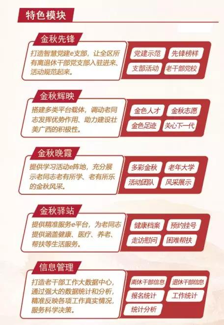 图为自治区党委老干部局领导班子成员、中国联通广西分公司领导共同启动了广西离退休干部综合服务管理平台。 8月9日上午,广西离退休干部综合服务管理平台上线启动仪式在广西老年大学园湖校区举行。自治区党委组织部副部长、老干部局局长、自治区党委离退休干部工作委员会书记曾艳,中国联通广西分公司党委书记、总经理薛吉平,自治区党委老干部局副局长、自治区党委离退休干部工作委员会副书记(兼)廖宏鹰,中国联通广西分公司副总经理蒙钊出席启动仪式,自治区党委老干部副局长李世科主持启动仪式,14个设区市党委老干部局、试点单位分管领导及负责同志,自治区党委老干部局各处室及直属单位负责同志参加。 在观看了广西离退休干部综合服务管理平台宣传片和听取了中国联通广西分公司产业互联网中心总经理、(联通)广西产业互联网研究院院长肖斌对平台概况的介绍后,自治区党委老干部局领导班子成员、中国联通广西分公司领导共同启动了广西离退休干部综合服务管理平台,标志着广西老干部工作进入了大数据、信息化管理的新阶段。 今年以来,自治区党委老干部局深入贯彻落实全国老干部局长会议精神和中组部老干部局关于加快推进老干部工作信息化建设的有关要求,与中国联通广西分公司通力合作,深入调研、多方论证,以“统一规划、统一建设、分级管理、多级互联”为总体思路,依托广西电子政务云计算中心资源,充分运用互联网+、云计算、大数据等先进技术手段,组织建设了广西离退休干部综合服务管理平台,构建了“互联网+党建+服务+活动+宣传+管理”五位一体的信息化体系。 新建成的广西离退休干部综合服务管理平台由一个电脑端(PC端)和两个手机端(APP端)组成,实行自治区党委老干部局、区直单位、设区市、县(市区)分级管理,设置“信息发布”“金秋先锋”“金秋辉映”“金秋晚霞”“金秋驿站”“信息管理”“工作管理”七大功能模块,建立离休、退休干部基础数据库和党建、活动、服务主题共享数据库,有效覆盖了老同志的主要需求和老干部工作的主要内容,实现管理、服务、指导、统计分析一体化,推动全区老干部工作精准化服务、规范化管理。广西离退休干部综合服务管理平台上线运行,必将为全区广大离退休干部提供更加细致、周到的服务,为老干部工作创新发展提供更加广阔的舞台,为老同志助力建设壮美广西、共圆复兴梦想提供更好的平台。 当天,自治区党委老干部局举办了操作使用培训。从8月10日起到12月底,该服务管理平台将在钦州、贺州、自治区监狱管理局、自治区党委老干部局及直属单位等试点单位进行运行,以推进已有功能的完善和其他功能的开发。各级老干部工作部门将以平台上线运行作为新的起点,在优化功能、数据采集、推广应用、运行安全上下功夫、求实效,集中力量推动基础性、牵引性、关键性的工作任务,助推我区老干部信息化建设跑出特色鲜明的广西“加速度”。 图为操作培训会现场。 |