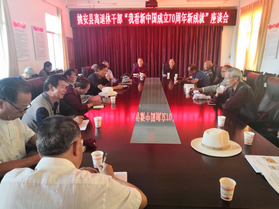 8月6日下午,云南姚安县召开离退休干部“我看新中国成立70周年”座谈会。28名居住在县城的离退休干部参加了座谈,座谈会由县离退休干部党委书记黄丽华同志主持。 座谈会上,离退休干部结合自己的亲身经历、所思所想、切身感受踊跃发言,他们从国家政治、经济社会、文化教育等方方面面翻天覆地的发展变化和辉煌成就谈起。将姚安十八大以来以“一乡两城三基地四产业”的发展思路,着力实施抓基层组织建设促脱贫攻坚,发展现代农业、乡村文化旅游业巩固脱贫成果和实施乡村振兴战略,在社会经济发展、城市规划建设、乡村建设、医疗卫生教育事业等方面所取得成就一一列举,诠释了我们祖国和家乡在共产党的正确领导下,实现了国家繁荣昌盛、家乡富裕文明、人民生活幸福。 他们以新中国成立和建设发展的亲历者、见证者、受益者的身份追忆往昔艰苦奋斗的峥嵘岁月,将祖国和家乡的发展变化的记忆向我们娓娓道来,将感恩共产党、赞颂伟大祖国的情怀向我们一一诉说。座谈会谈出了离退休干部对中国共产党、中华人民共和国的自豪和自信,道出了他们永远跟党走、颂党恩,为奋进新时代继续贡献正能量、共筑中国梦的热情和决心。 |
