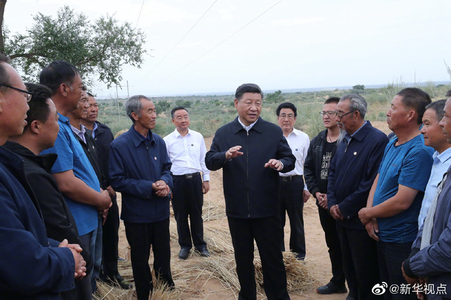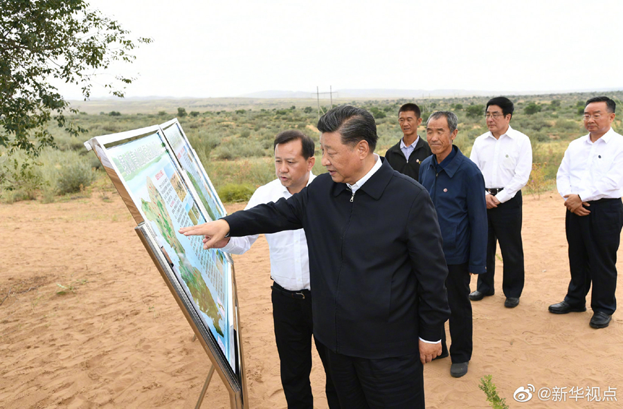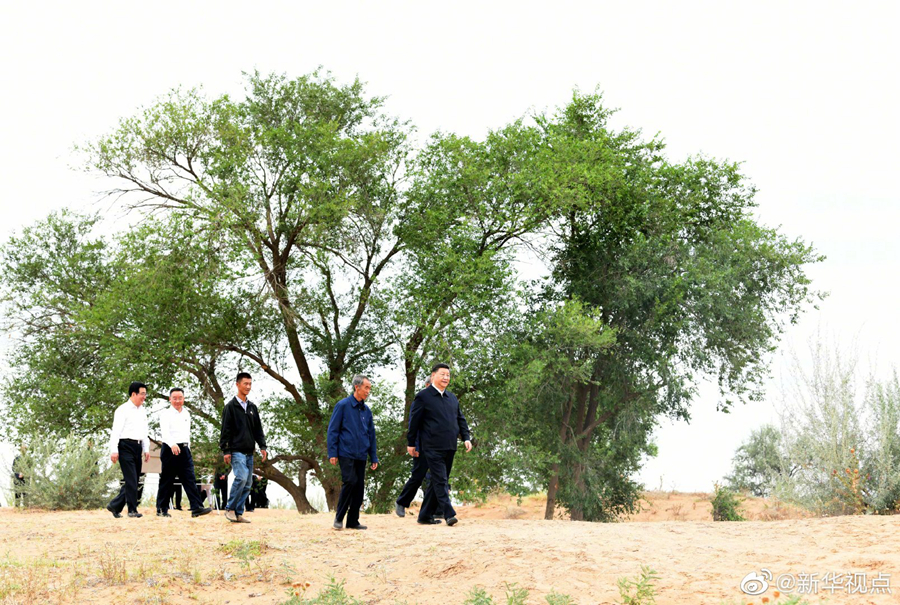 正在甘肃考察的习近平总书记,21日来到古浪县八步沙林场,察看林场风貌,听取武威市防沙治沙情况汇报和八步沙林场“六老汉”三代人治沙造林的感人事迹介绍,还拿起一把开沟犁,参与到治沙劳动中。习近平强调,我们要实现从富起来到强起来,就要把生态文明建设当作大事来抓,建设美丽中国。当前,生态文明观念日益深入人心,要继续发扬“六老汉”的当代愚公精神,再接再厉,再立新功,久久为功,让绿色的长城坚不可摧。(文字记者:张晓松、朱基钗 摄影记者:鞠鹏、谢环驰)